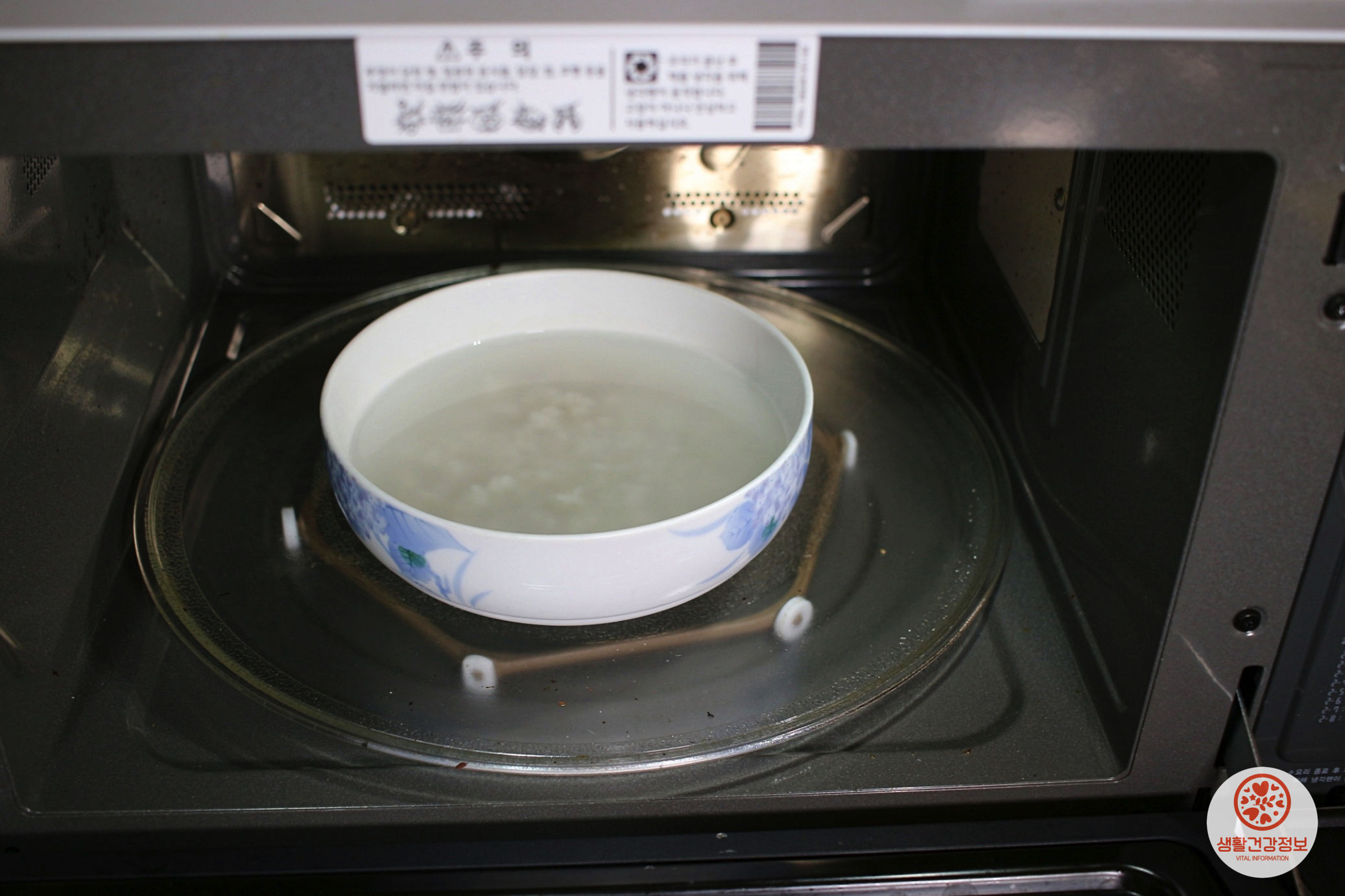 밥알을 세팅한 그릇을 전자레인지에 넣고