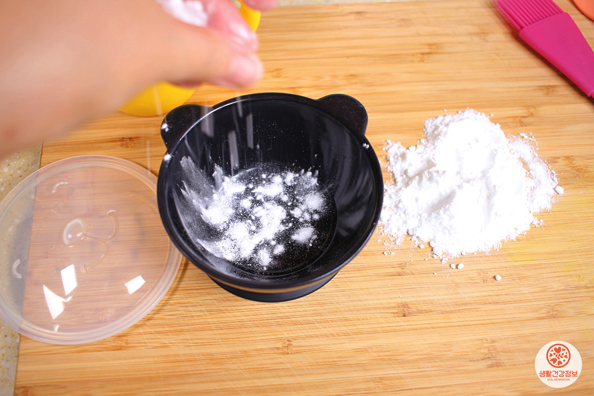 실리콘 주방용품에 베이킹소다를 뿌리고