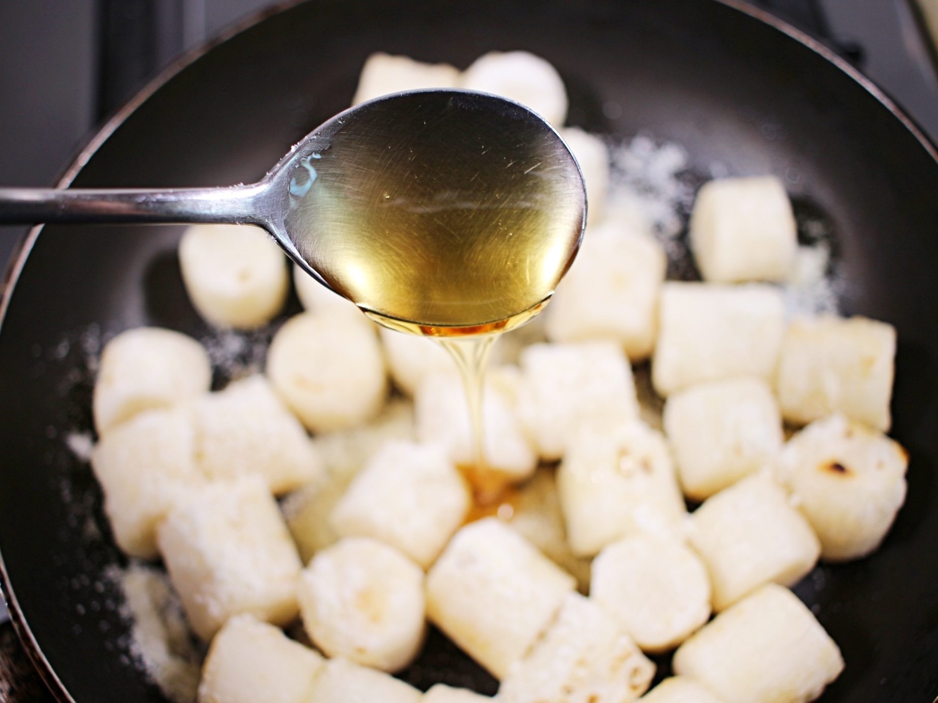 치즈가 떡에 녹듯이 감기면 꿀 2큰술을 더해 섞어주세요.