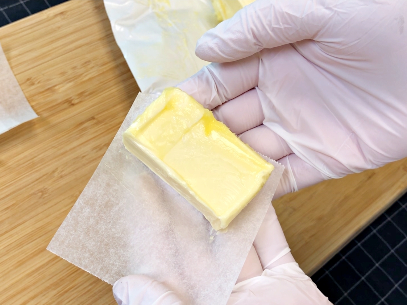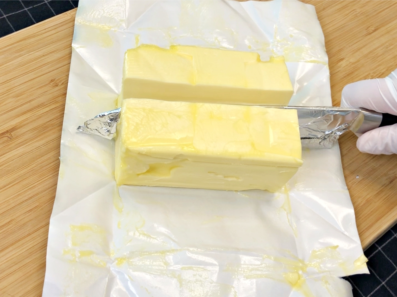 버터를 실온에 잠시 꺼내두면 손질하기 쉽게 적당히 부드러워요.