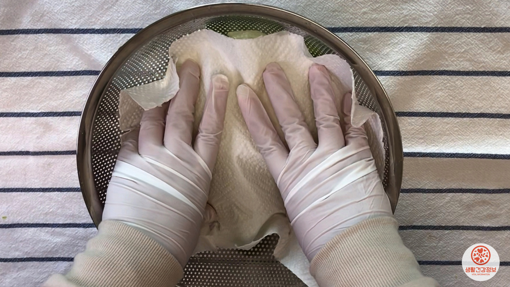 다른 키친타월로 한번 더 채반을 덮은 다음