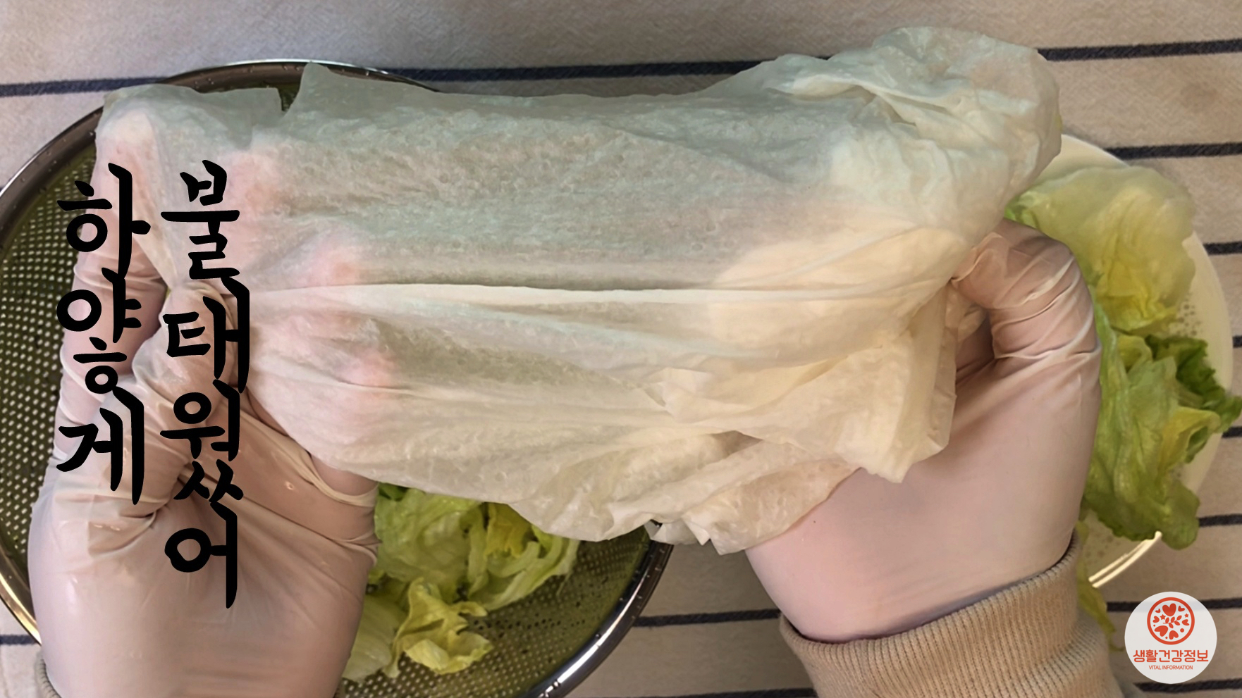 깨끗한 위생백 속에 키친타월을 한 장 깔고,