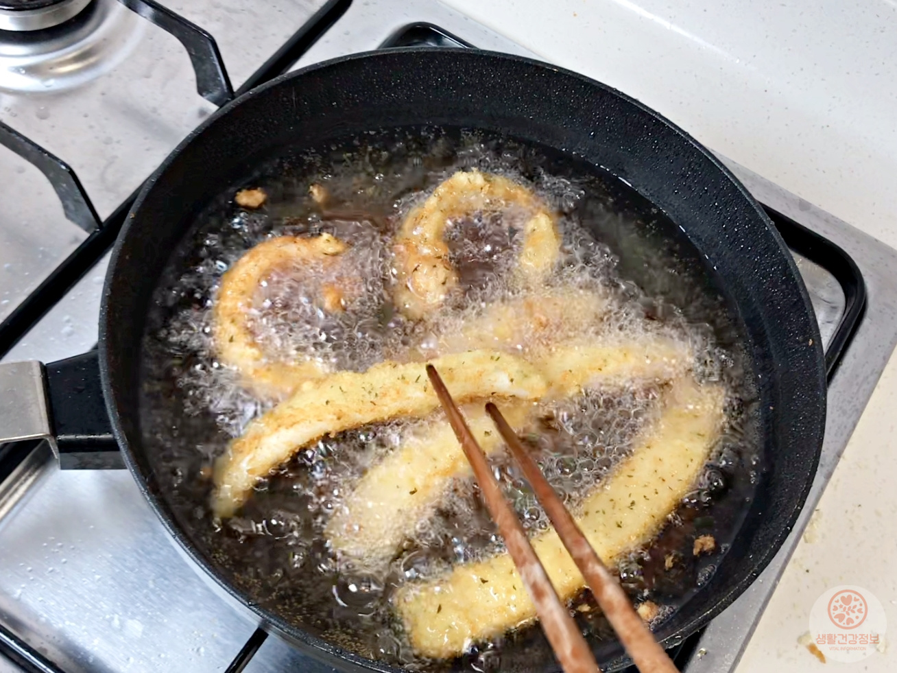 얇고 바삭한 튀김옷이 분리되지 않는 비법! 오징어튀김 레시피