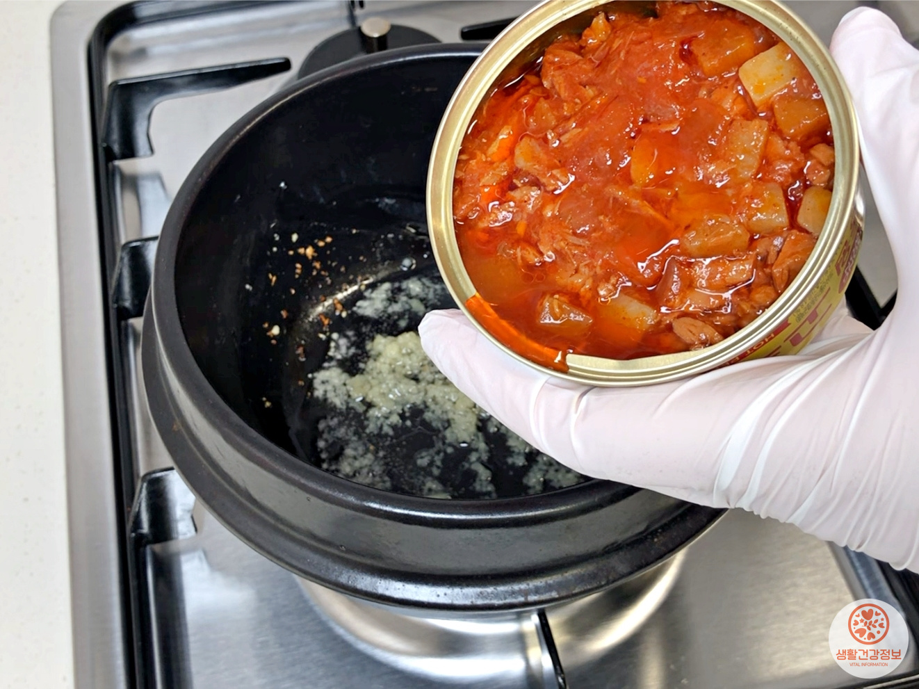고추참치 큰사이즈 한캔을 넣고 볶아주세요.