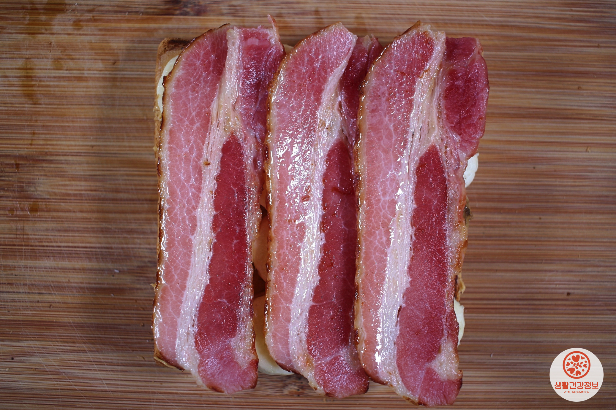 마지막으로 베이컨도 아낌없이 올리고