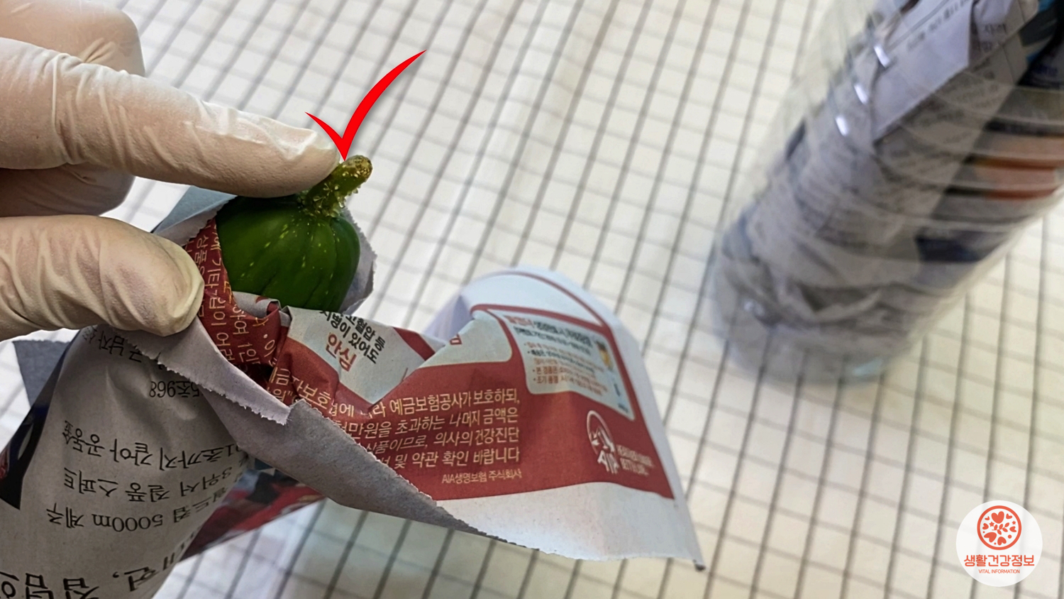오이를 신문지로 감쌀 때