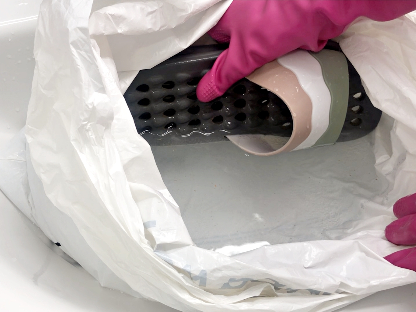 물로만 헹군 욕실 슬리퍼를 넣어주세요.