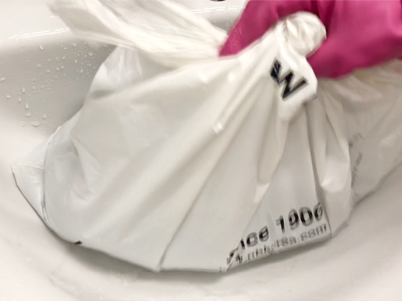 비닐봉지를 살살 흔들어서 과탄산소다를 녹인 다음
