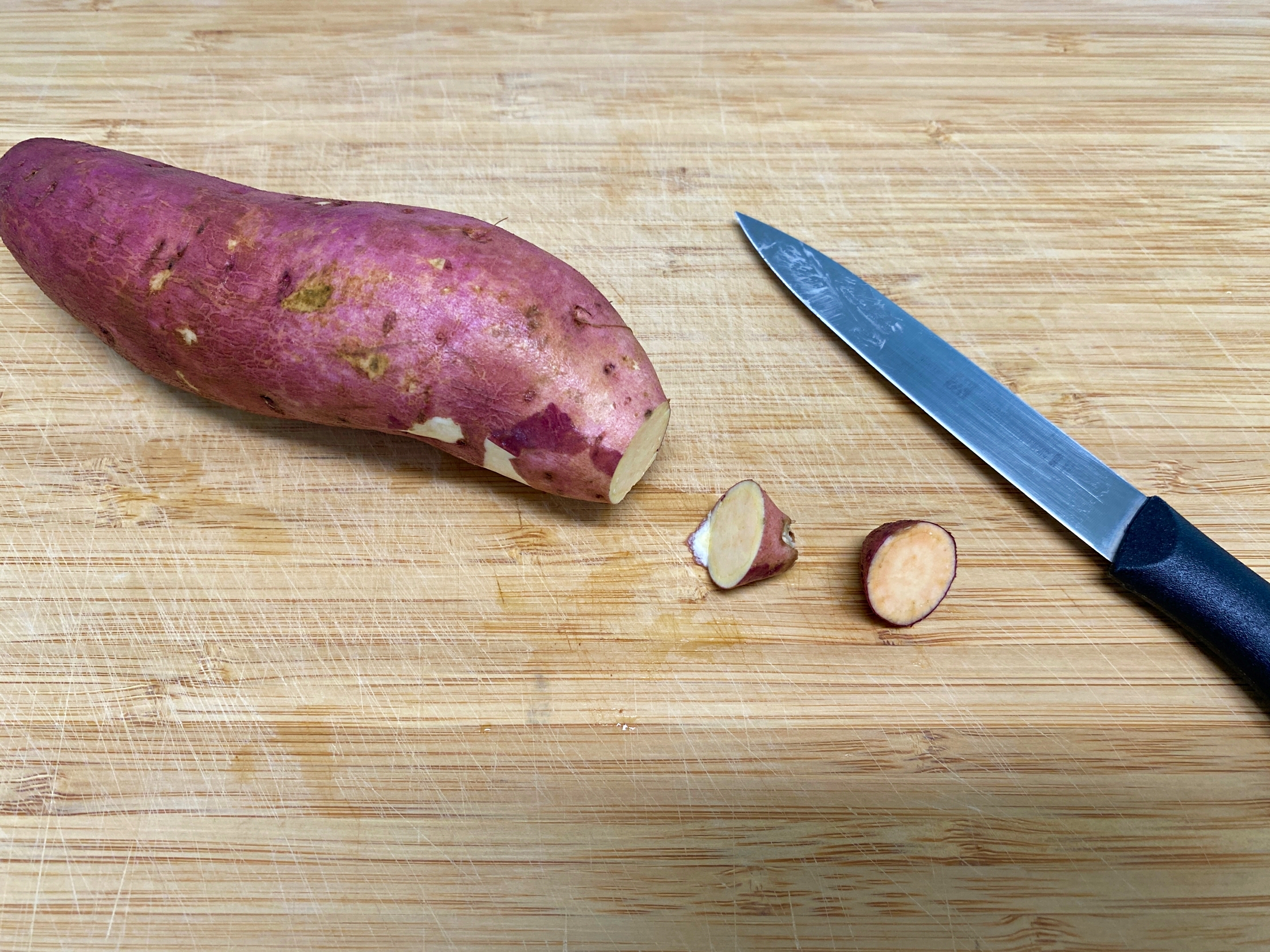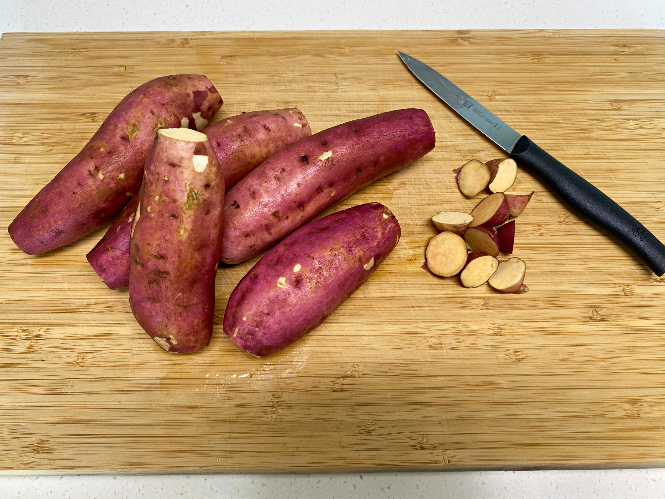 찜기에 넣기 전에 고구마의 양쪽 끝을 살짝 잘라내는 거예요.