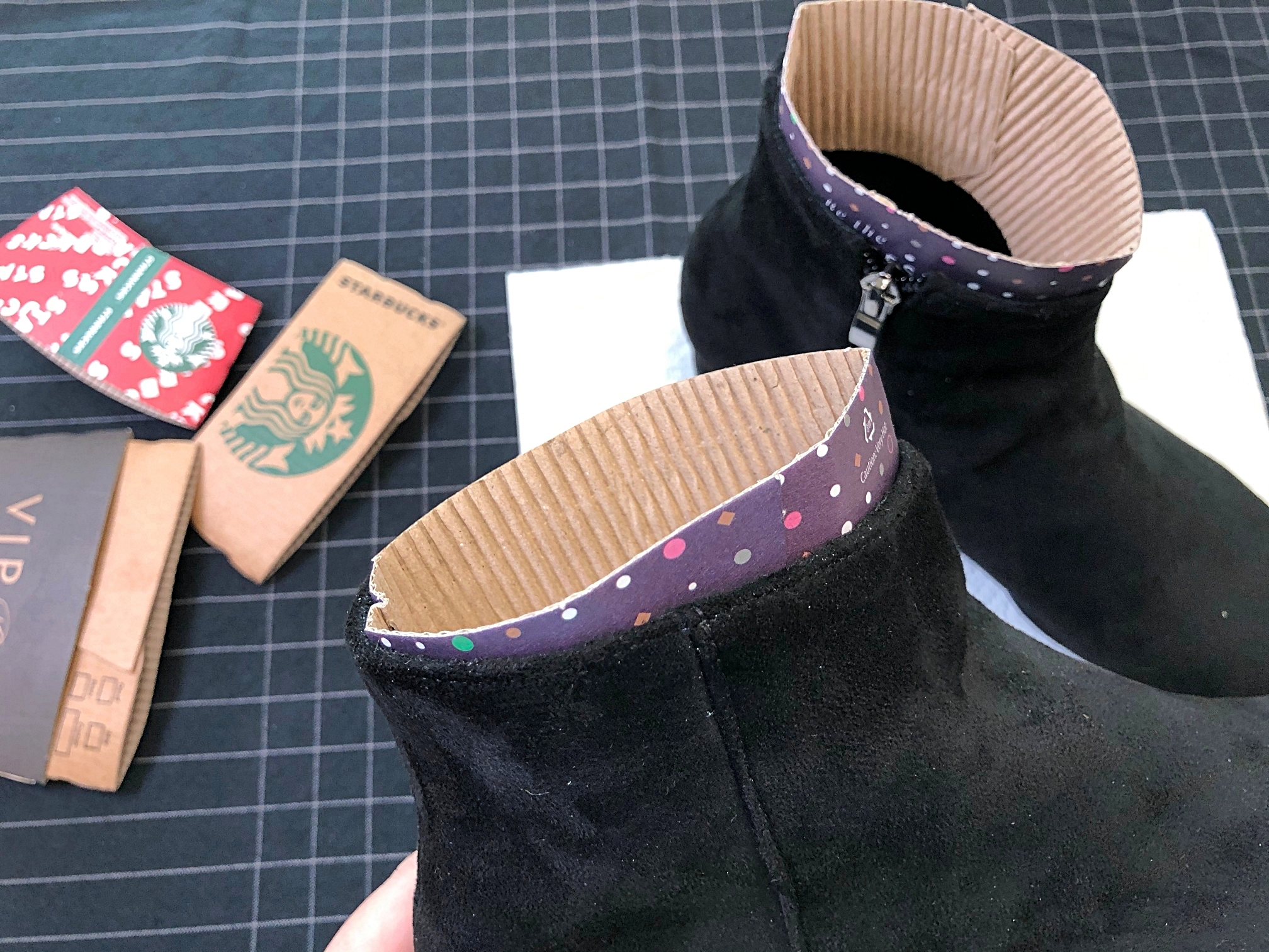 일회용컵홀더를 부츠 목 부분에 끼워놓으면