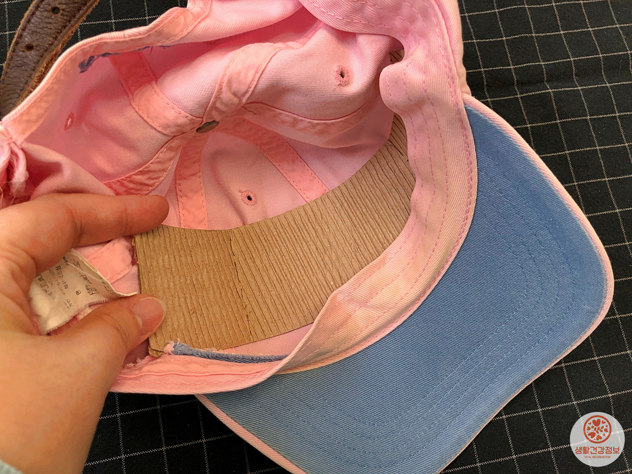 이번엔 일회용컵홀더를 모자에 끼워볼게요.