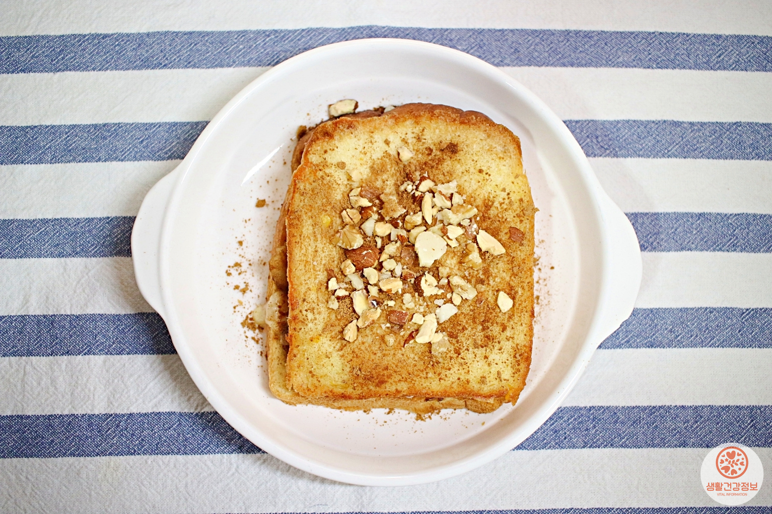 잘게 부순 견과류와 시나몬가루 뿌리면