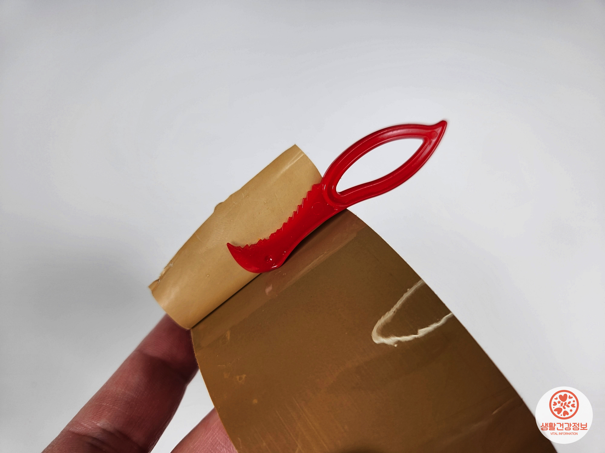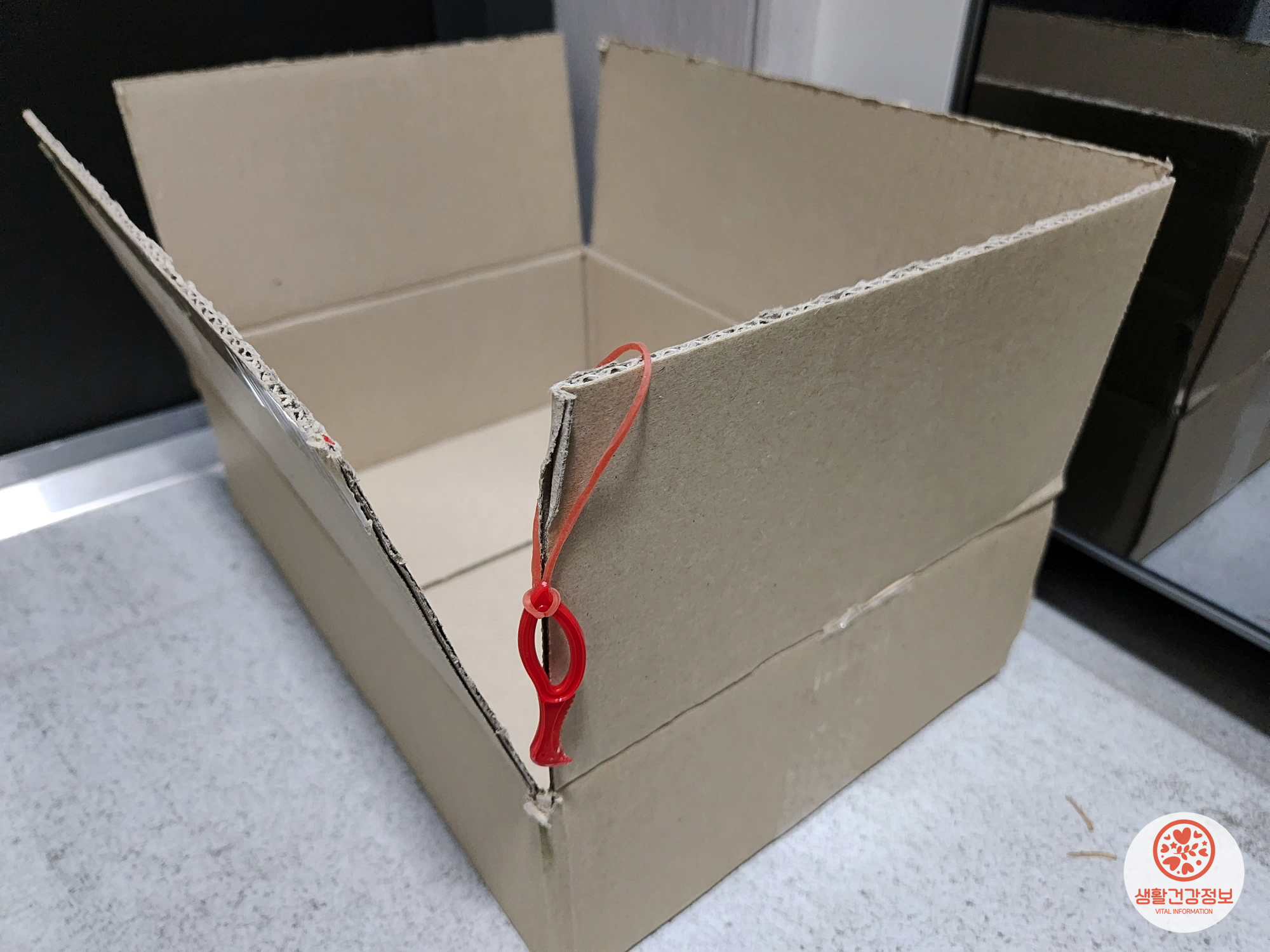 현관에서 일회용랩칼로 깔끔하게 오픈!