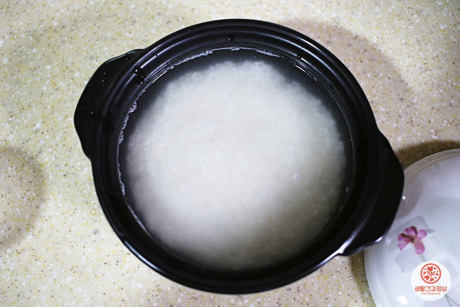 생쌀보다 반컵 적게 부으면 알맞아요.