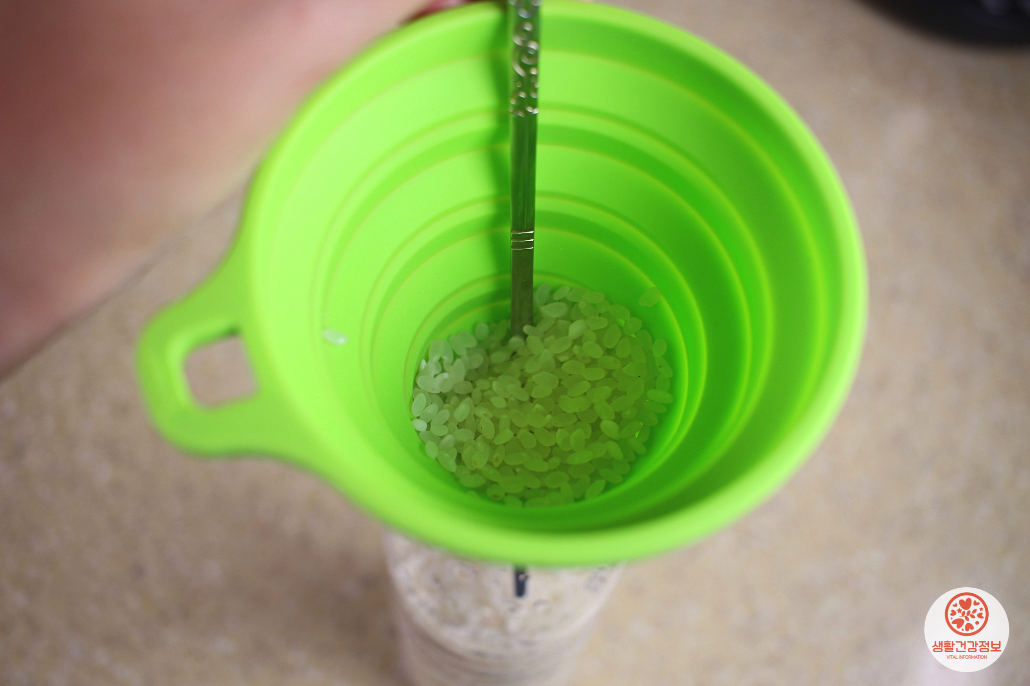 젓가락을 꽂아 놓은 상태로 내용물을 부으면