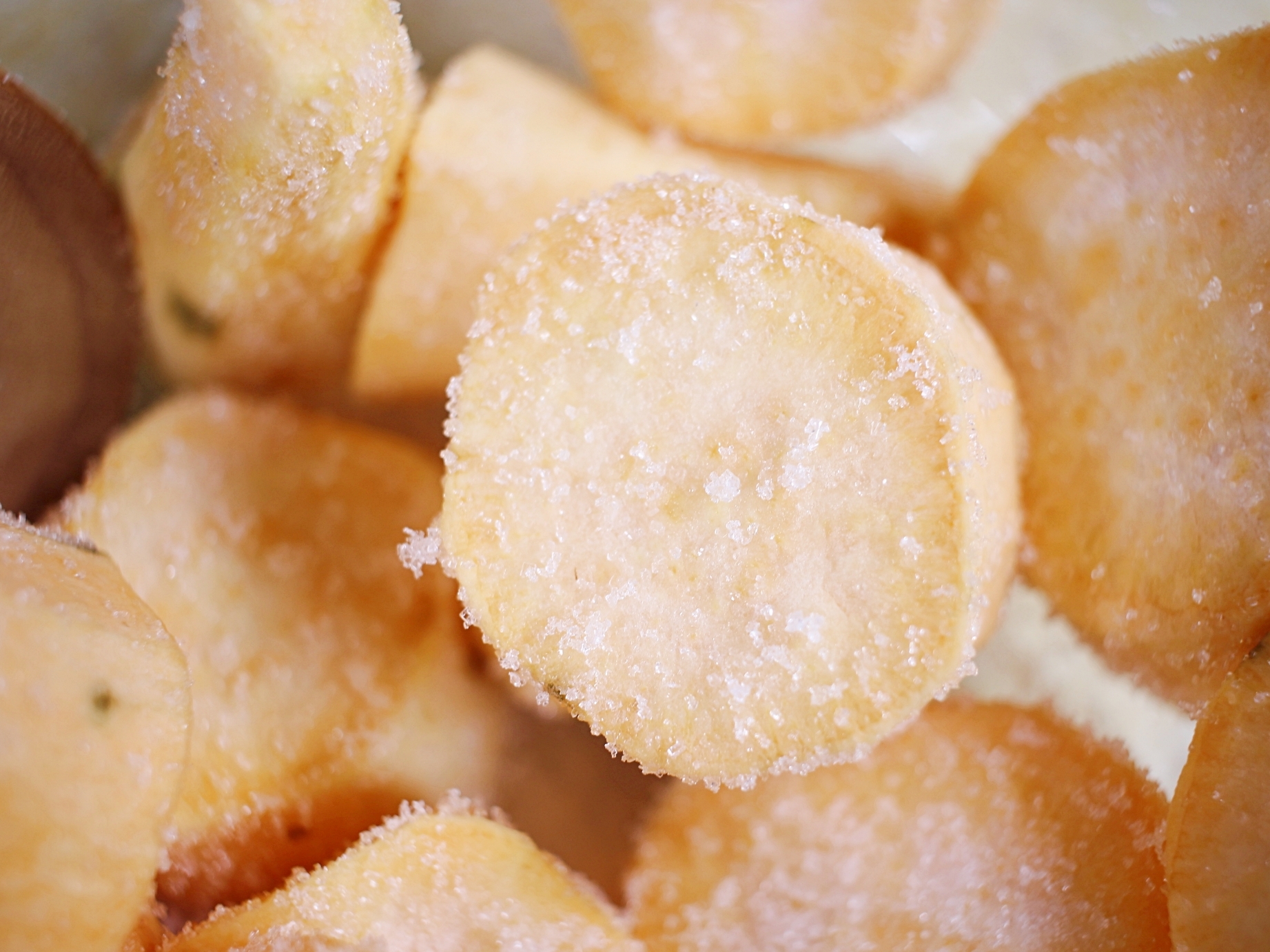 고구마 겉면의 설탕이 자연스럽게 녹으며 완벽하게 코팅돼요.