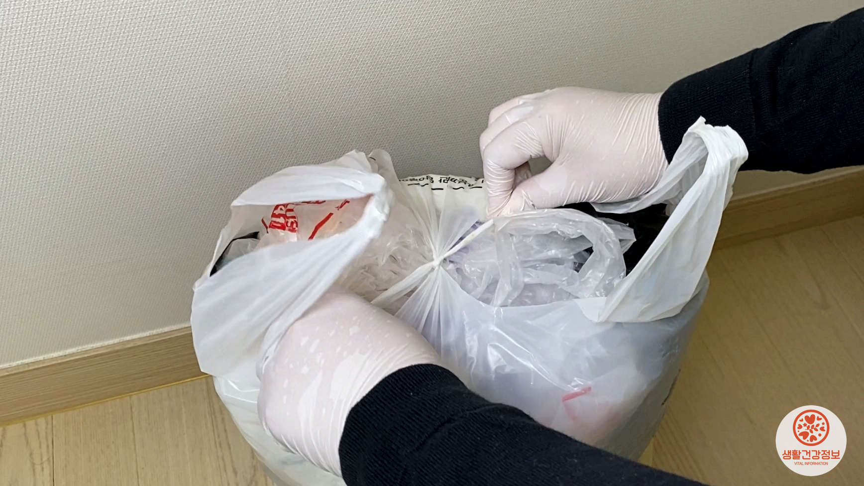 다시 손으로 꾹 눌러서 쓰레기를 압축시켜요.