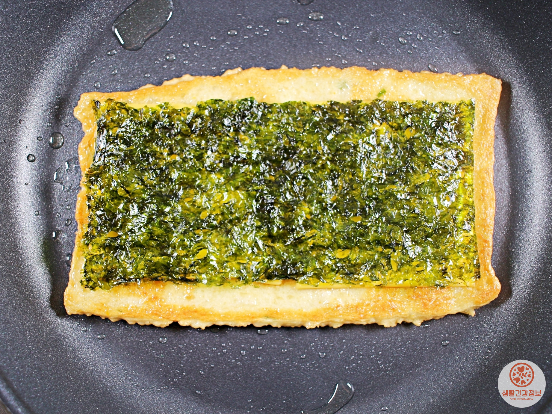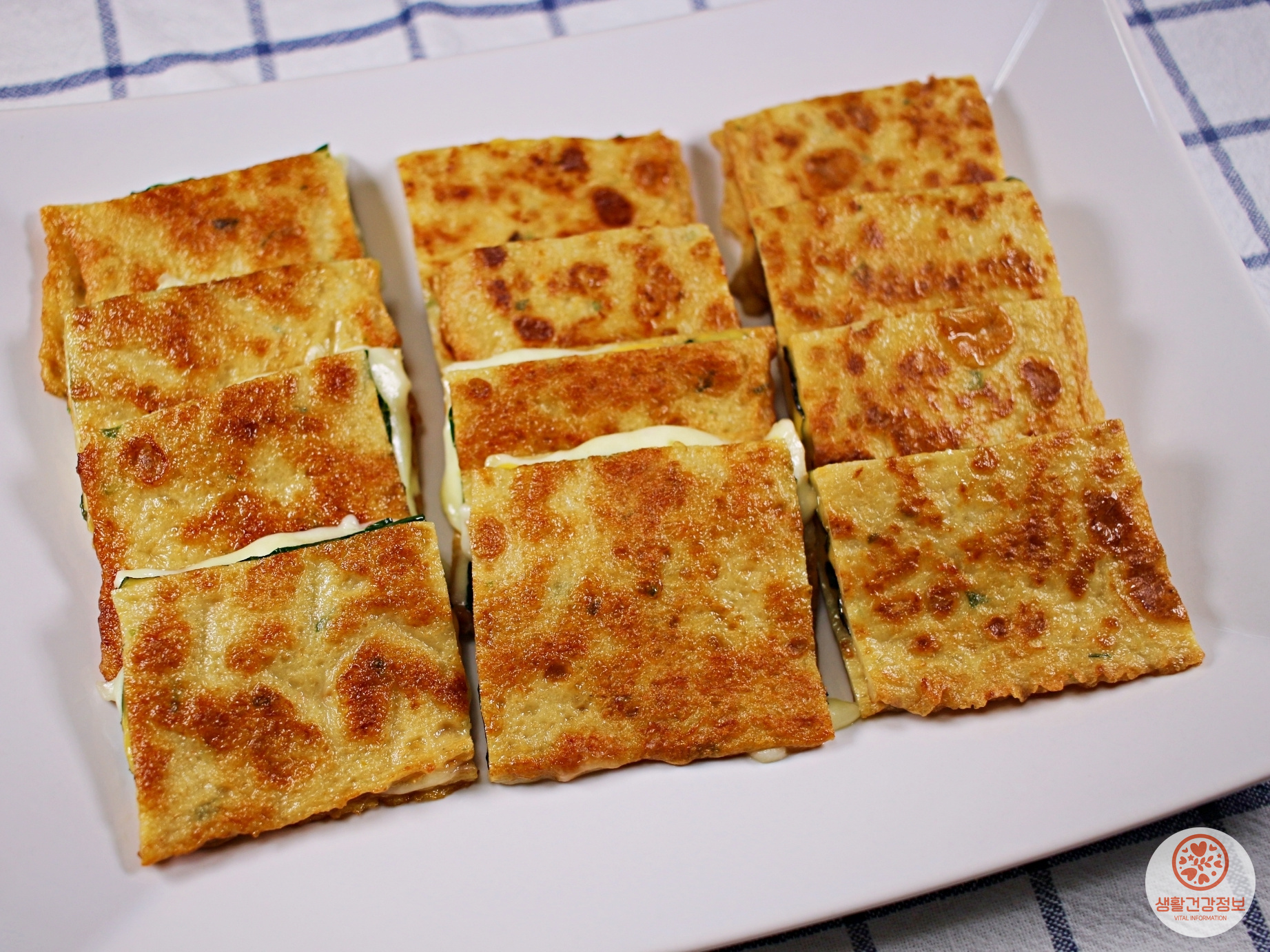 노릇노릇하게 구워서 한입 크기로 자르면 끝이에요.