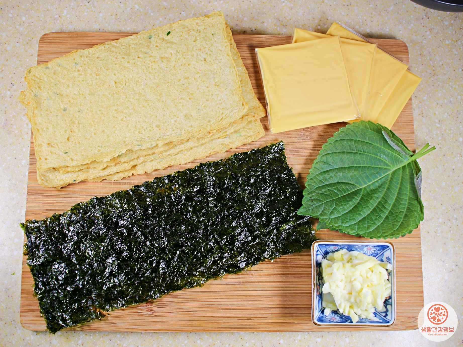 재료는 사각어묵, 치즈, 김, 깻잎 준비했어요.