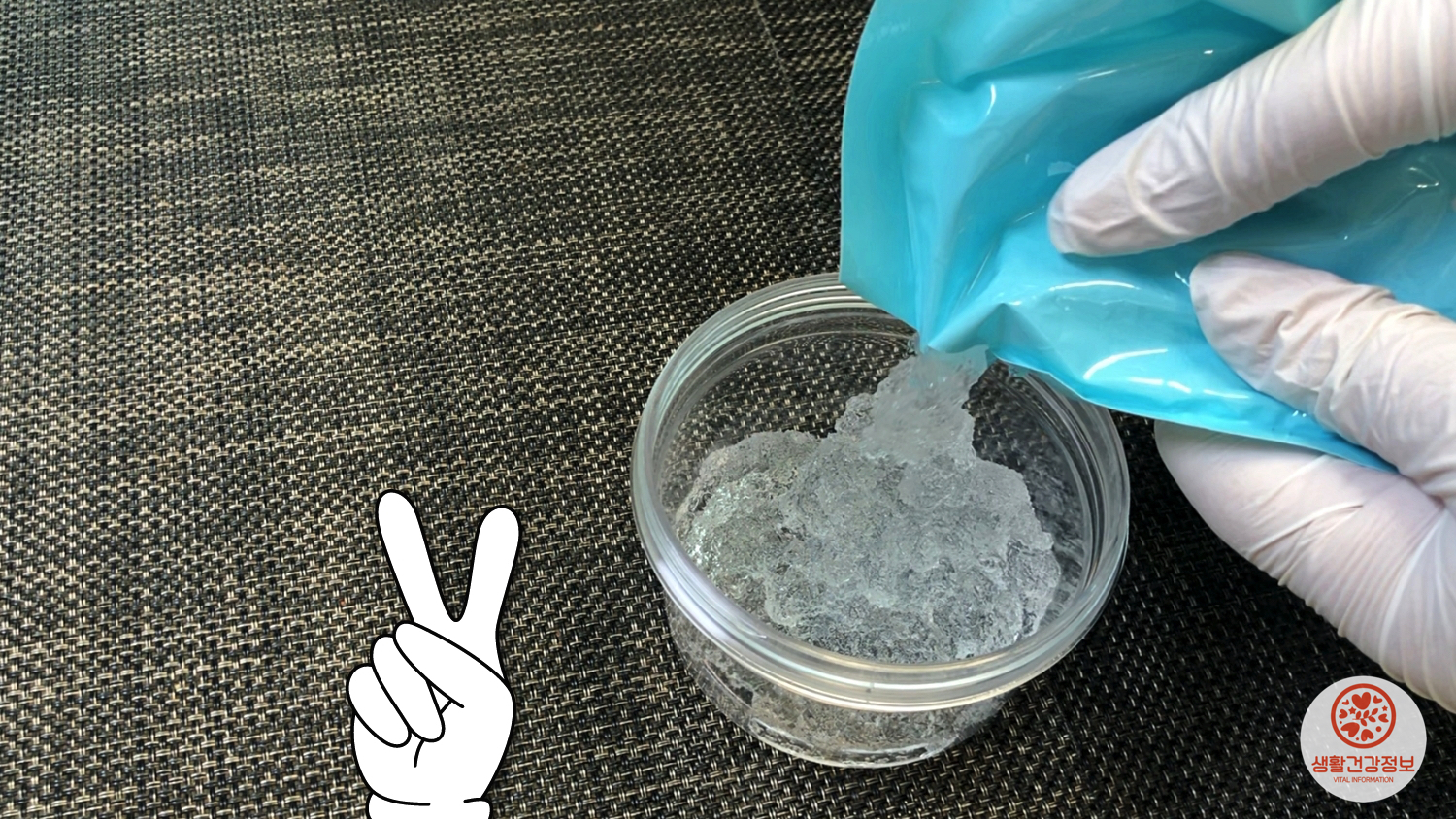화분의 흙 위에 아이스팩 속 폴리머를 올리고