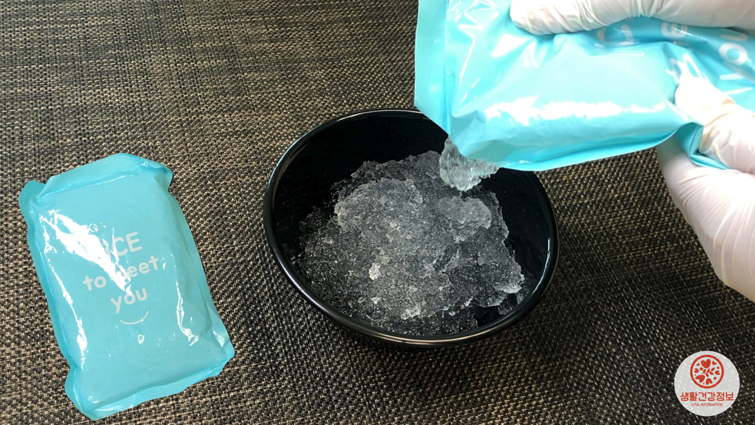 실온에 꺼내둬서 차갑게 굳지 않은 아이스팩을