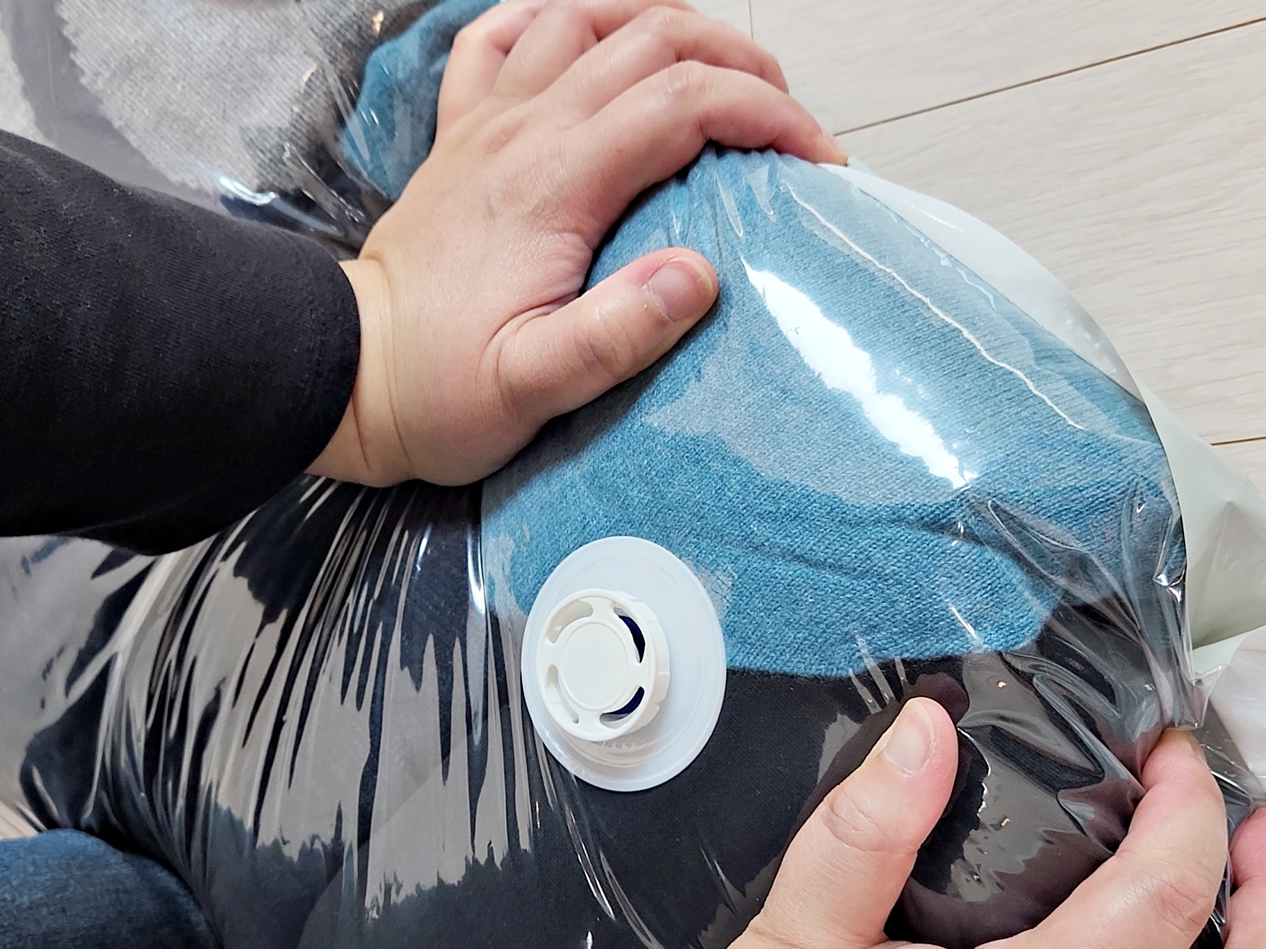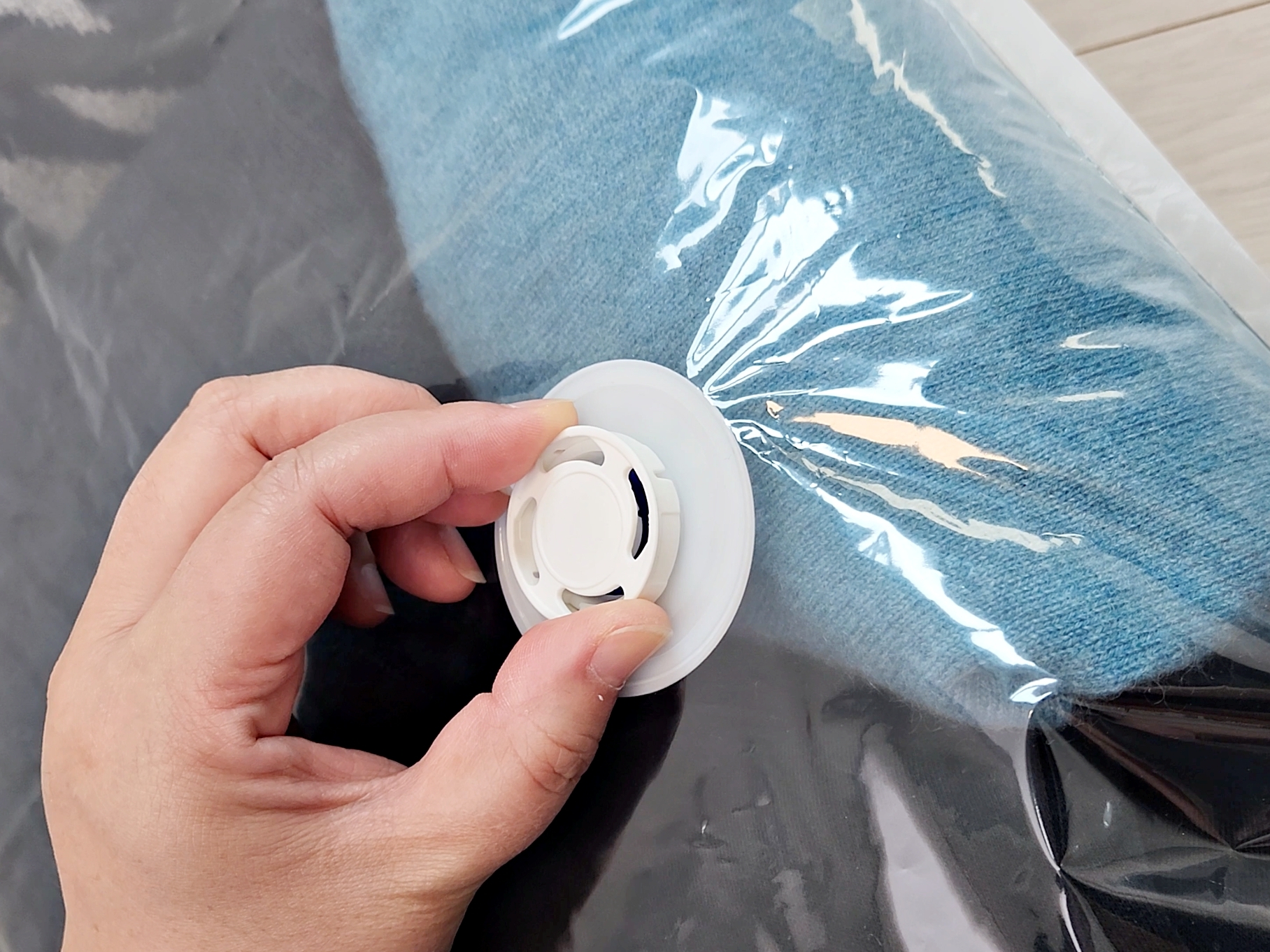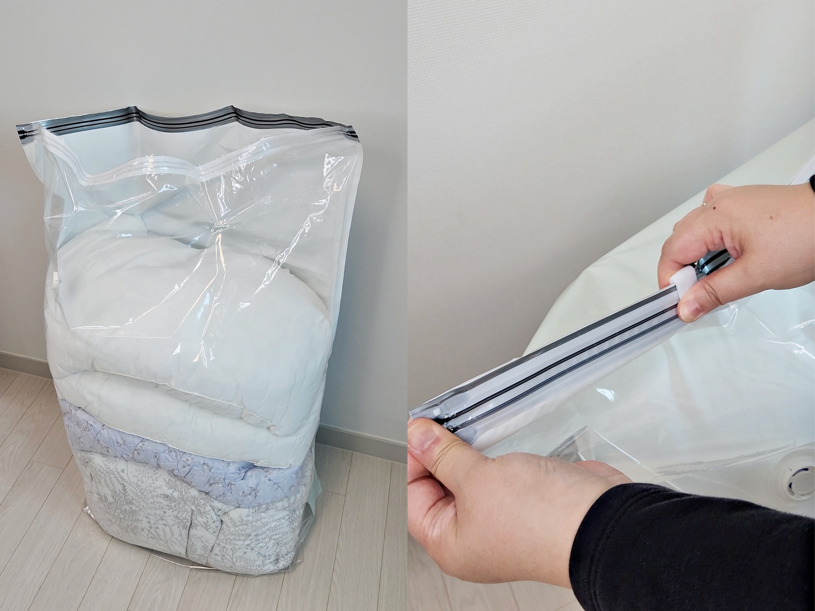 꾹- 눌러서 공기만 빼면 돼요.