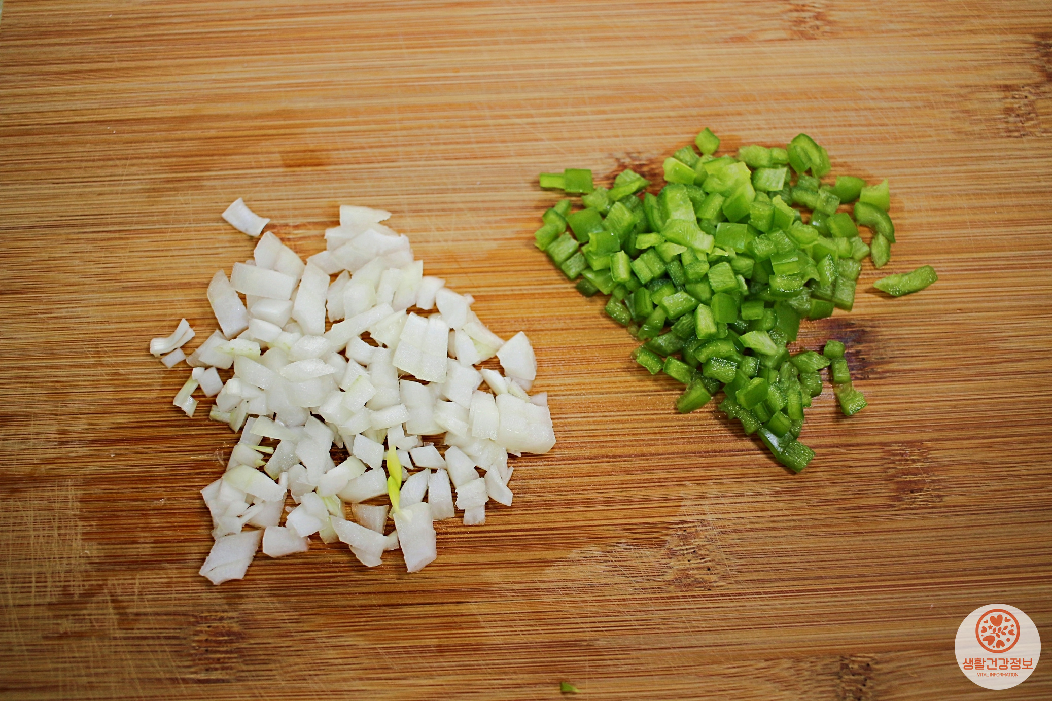양파랑 피망은 옥수수 알맹이랑 같은 크기로