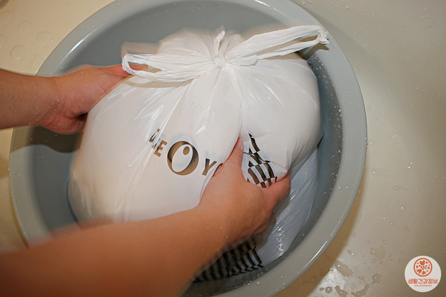 여기에 크록스를 넣고 비닐봉지를 묶은 다음