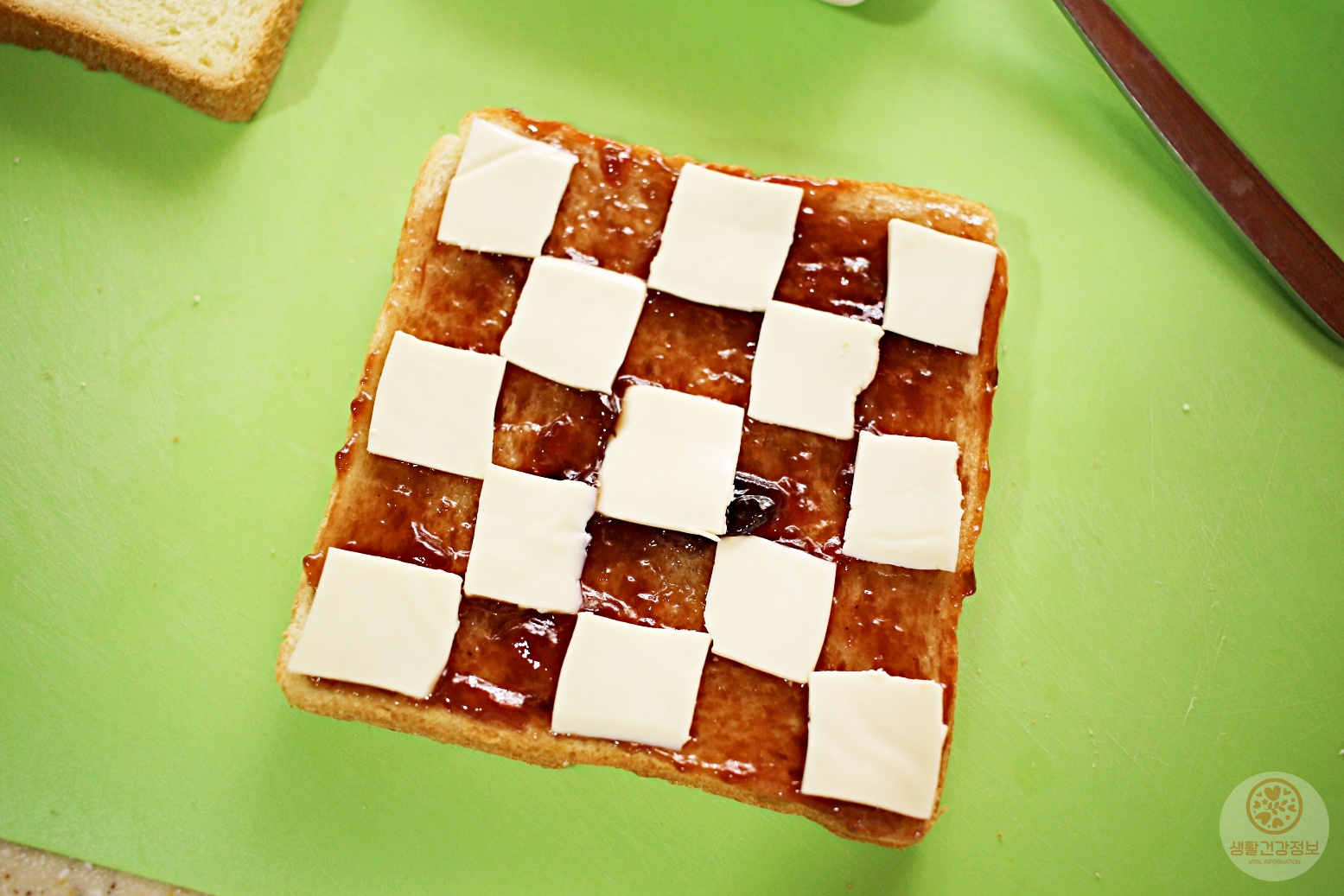 이제 체크모양으로 치즈와 잼을 세팅하면 되는데요.