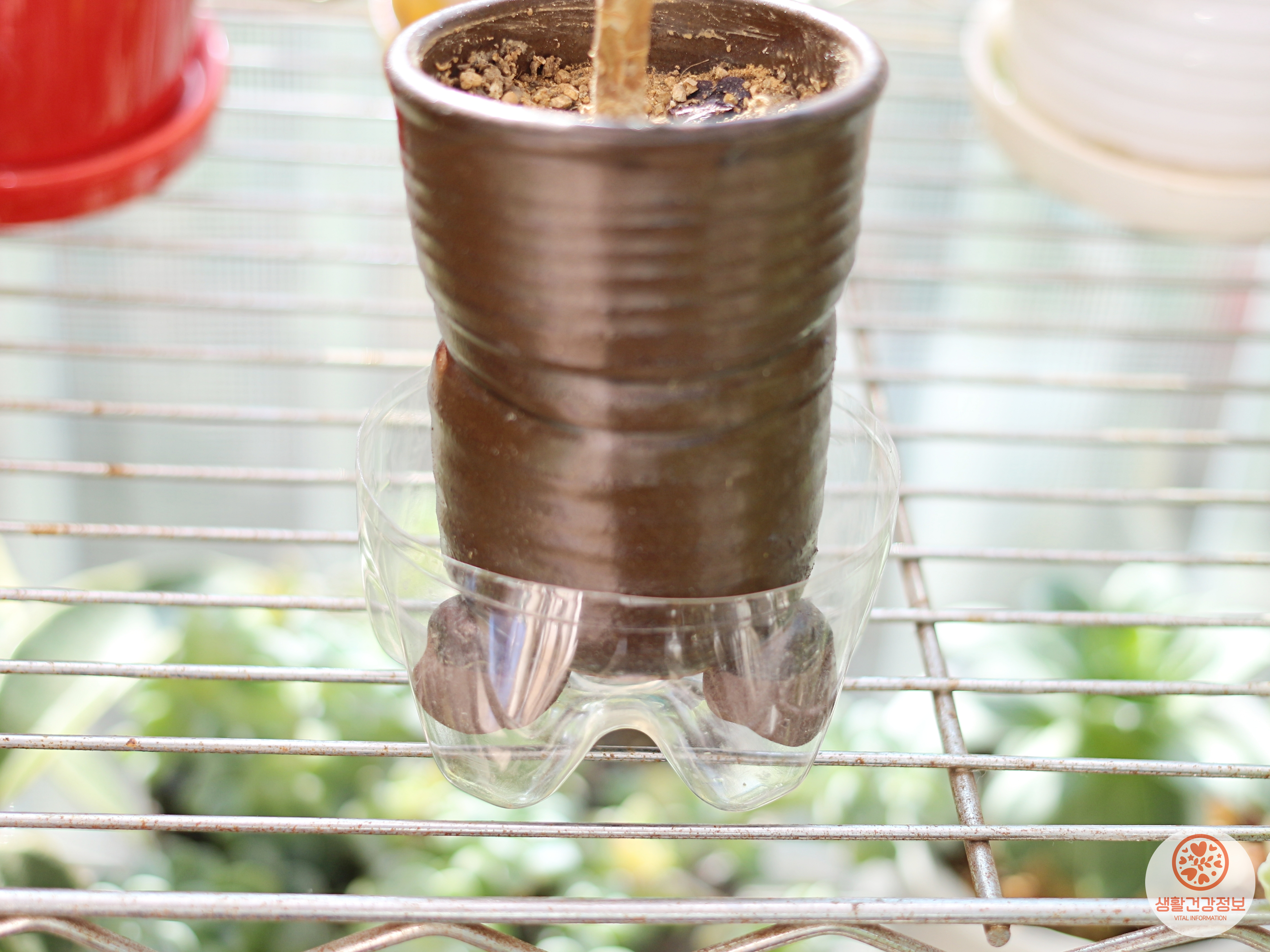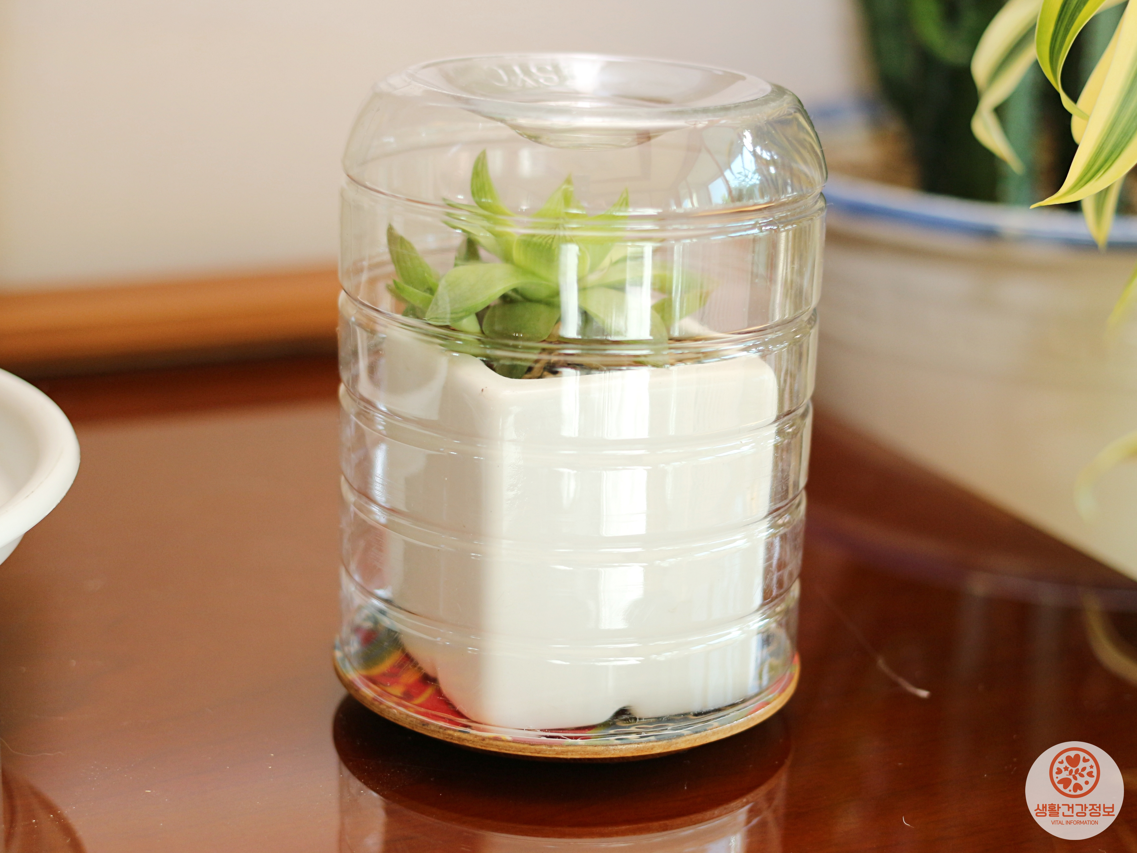 페트병에 송곳으로 구명 몇 개 뚫어서 미니화분에 씌우면