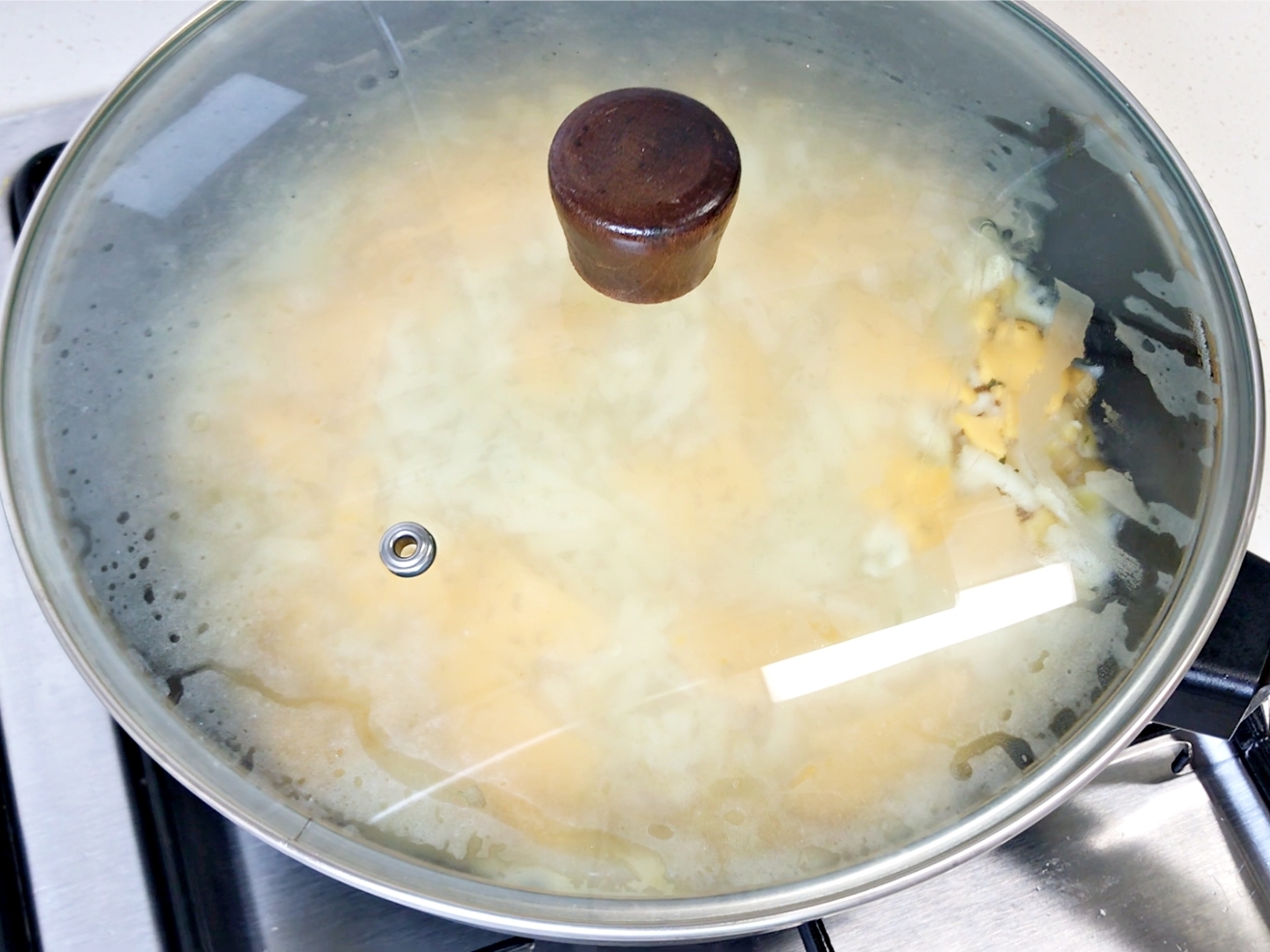 약불에서 뚜껑 덮고 치즈가 녹을 때까지 기다리면 끝.
