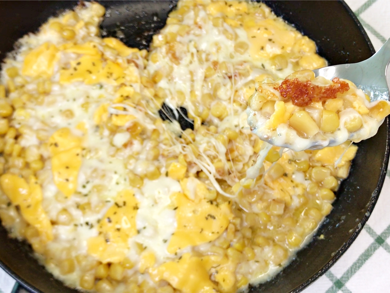 고소하고 달달하니 풍미 가득한 콘치즈가 완성됐어요.