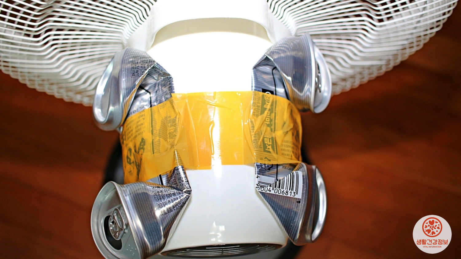 선풍기 모터를 감싸고 있는 커버에 붙이면