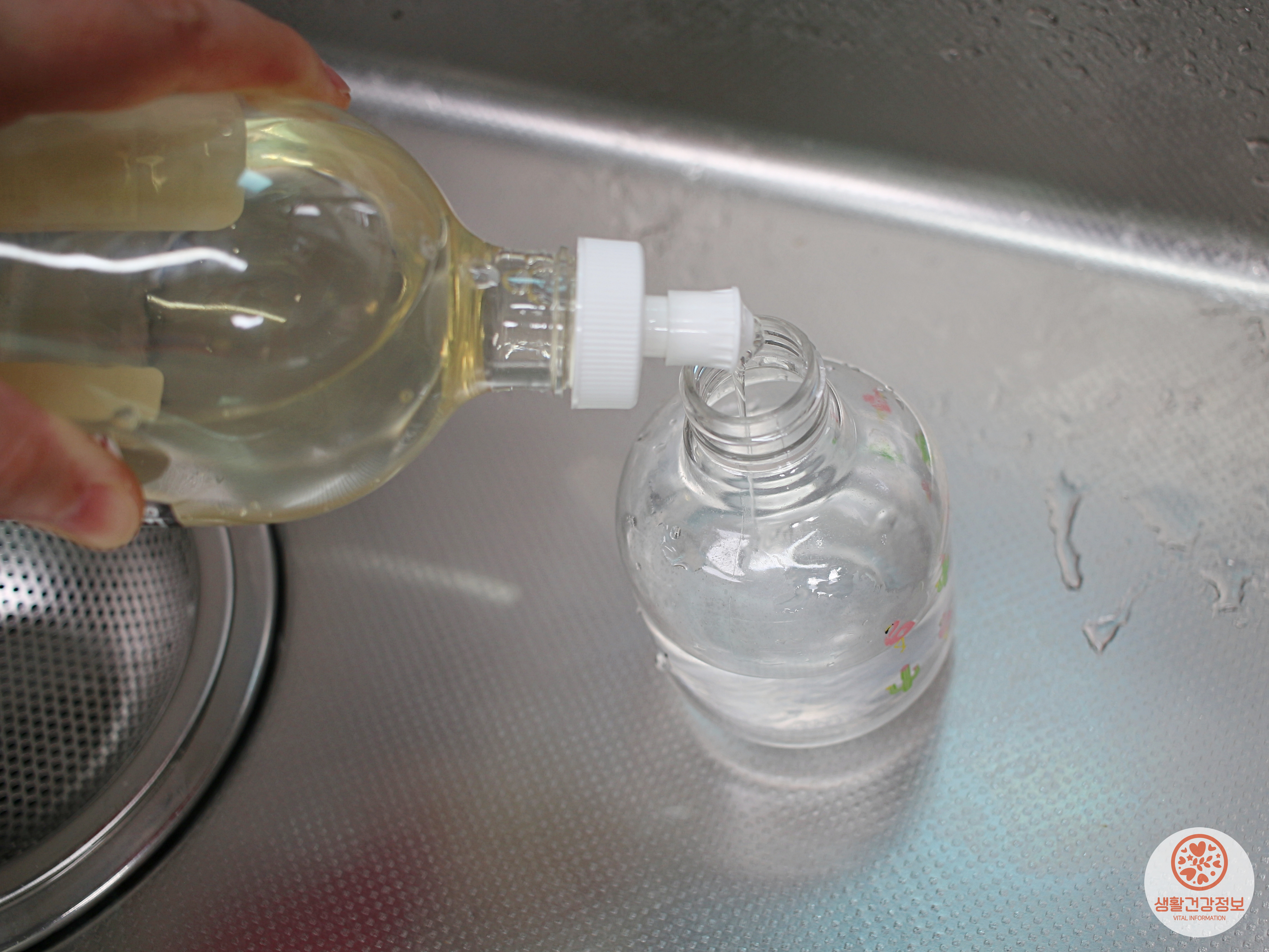물과 주방세제와 식초가 골고루 섞일 수 있게