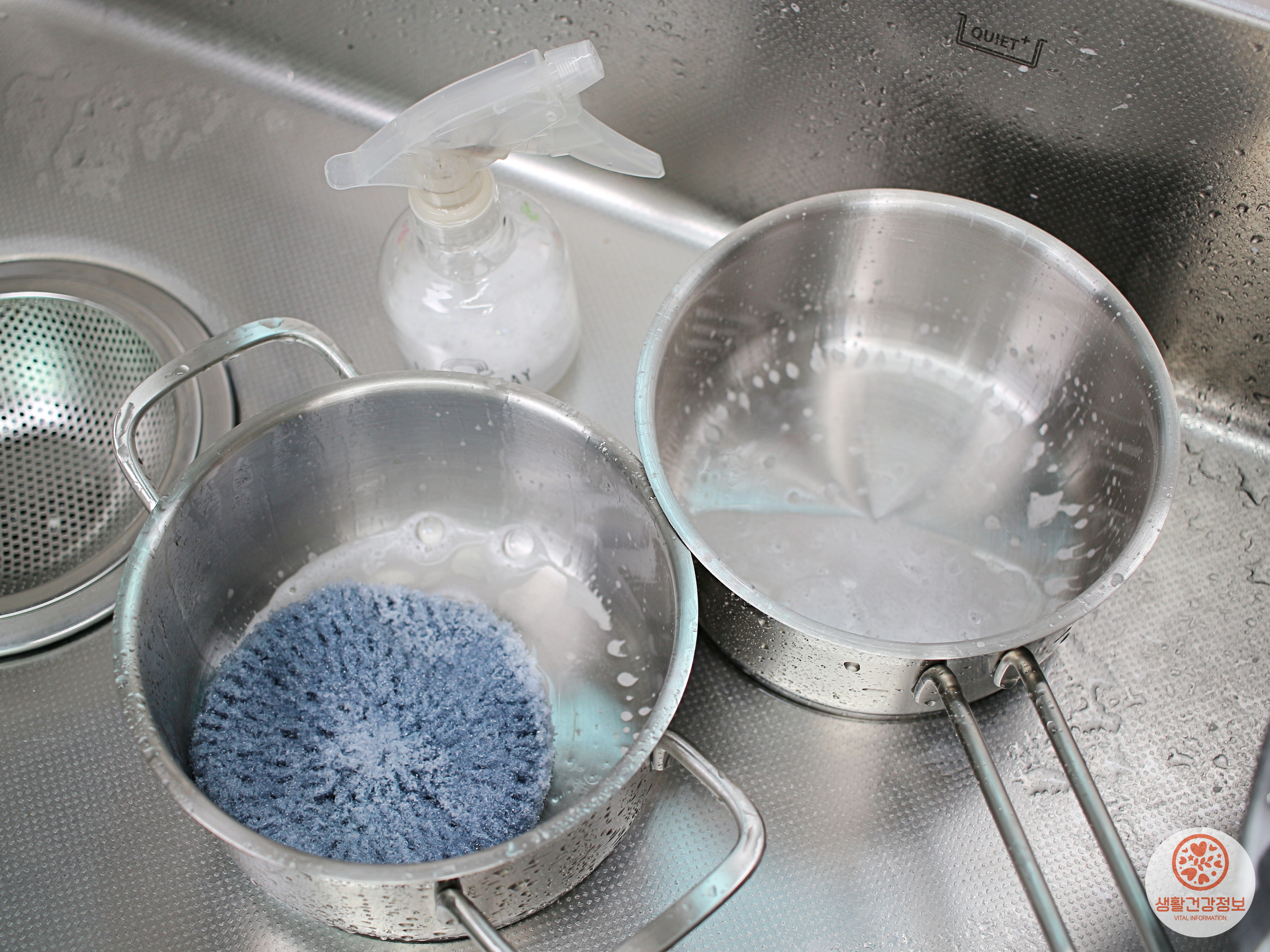 한번에 끝내는 살림비법! 설거지하면서 스텐냄비 무지개얼룩 지우기