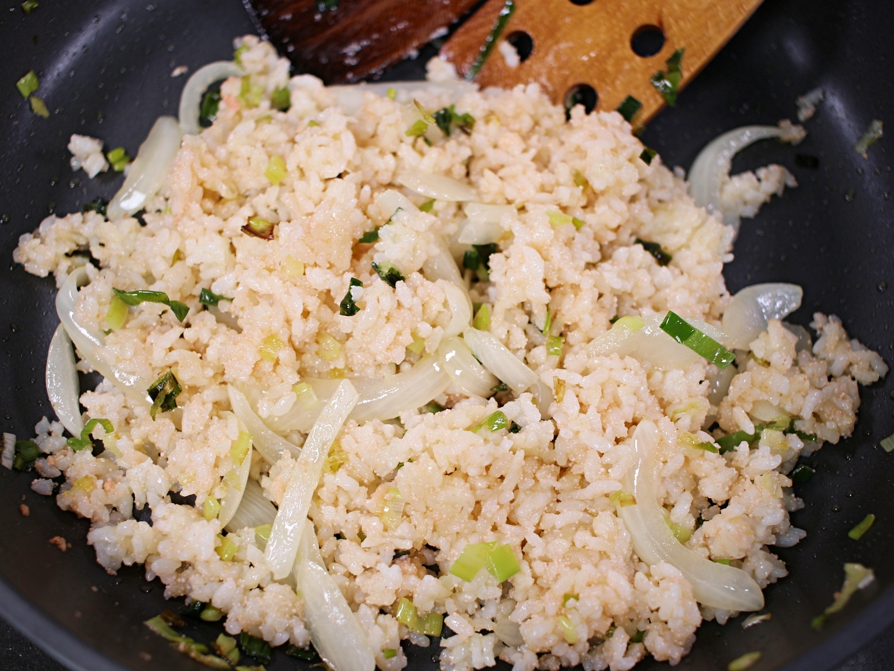 찬밥 한공기를 넣어 고슬고슬하게 볶아주세요.