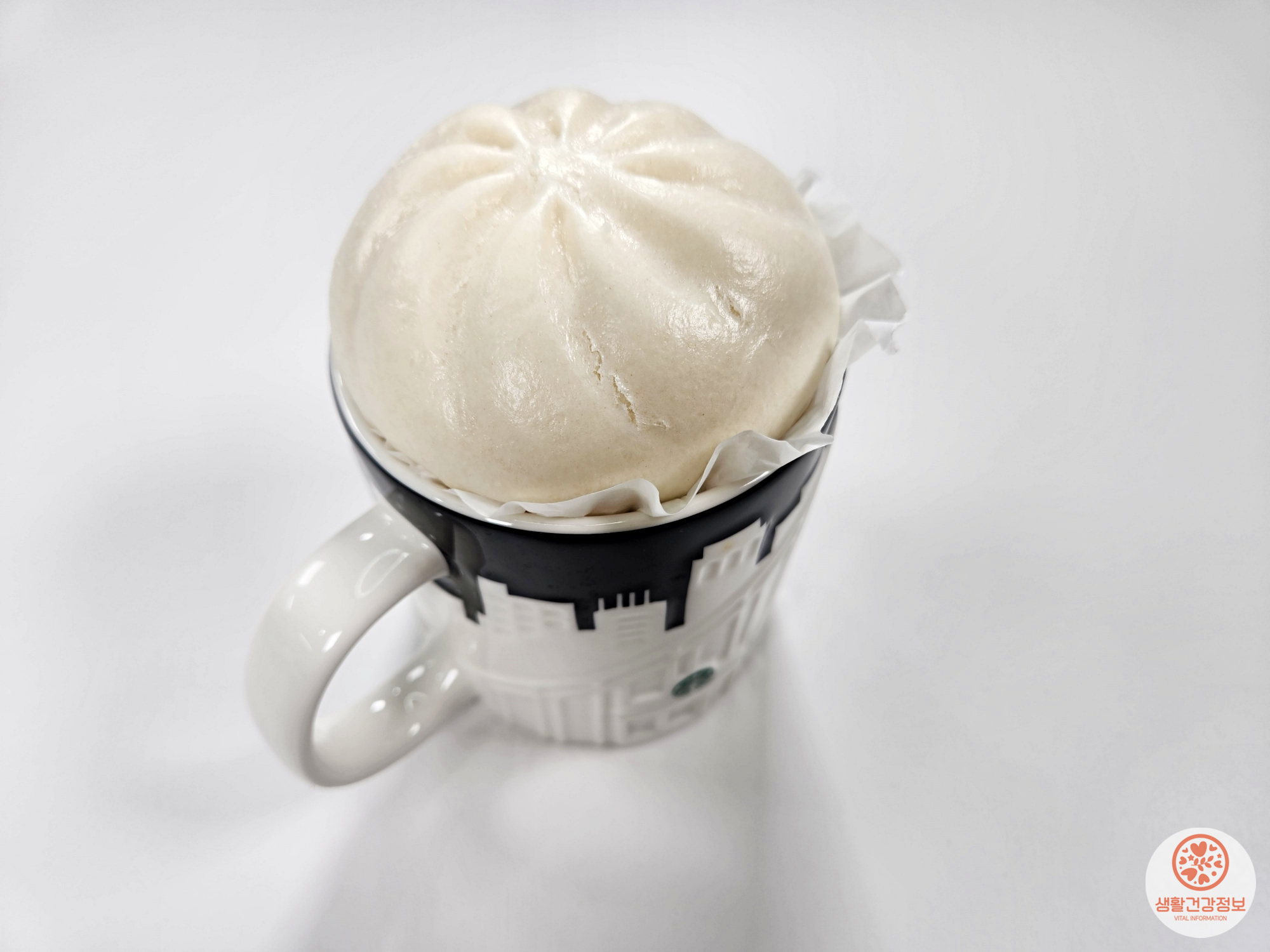 컵 위에 호빵을 올려주세요.