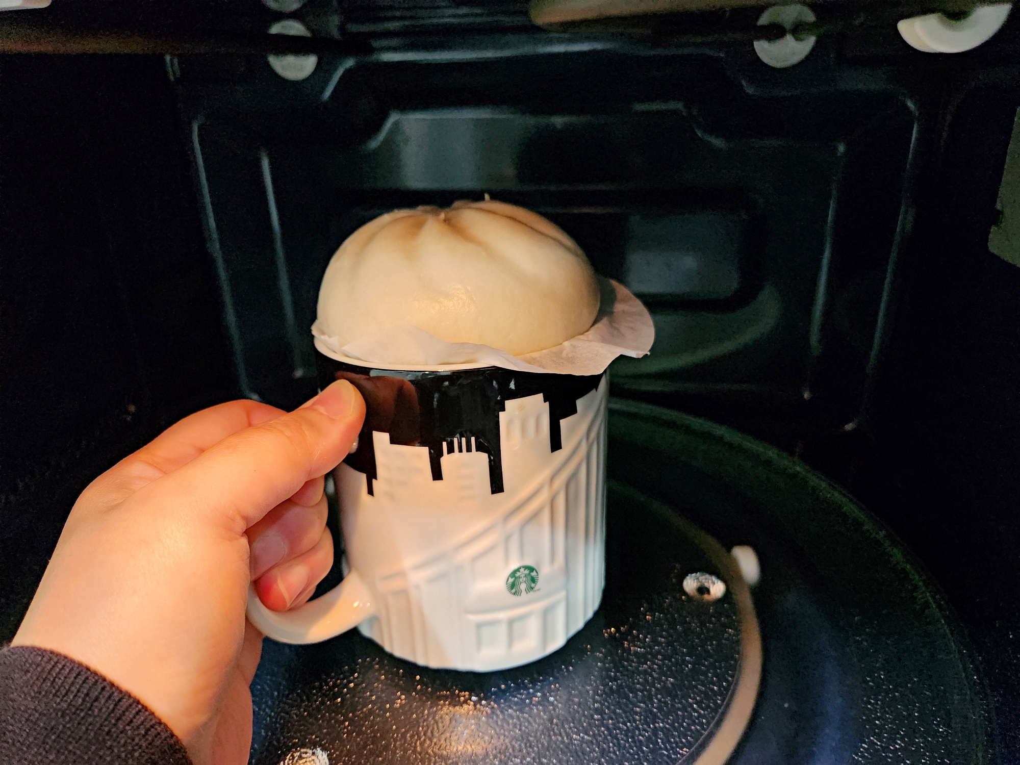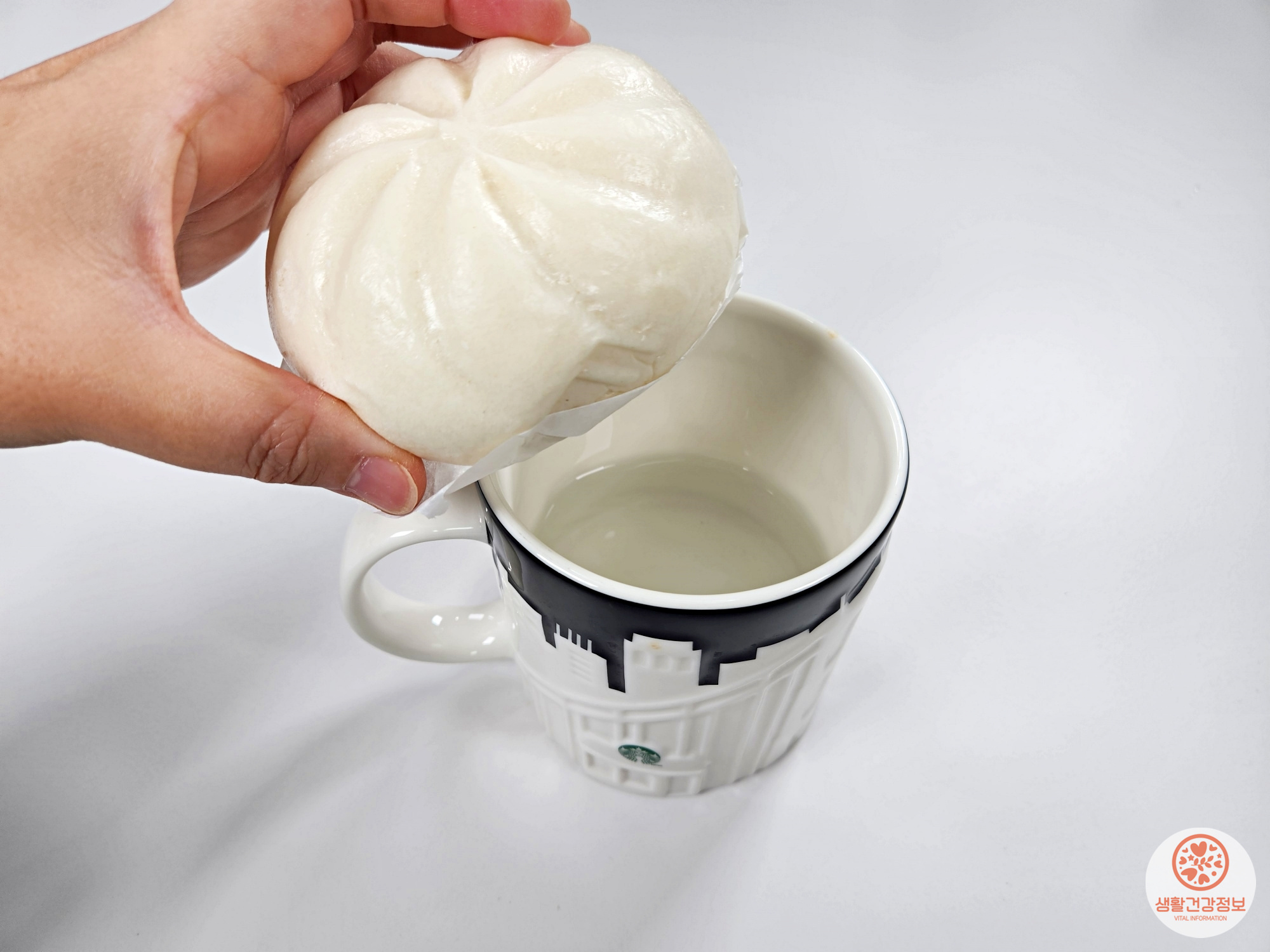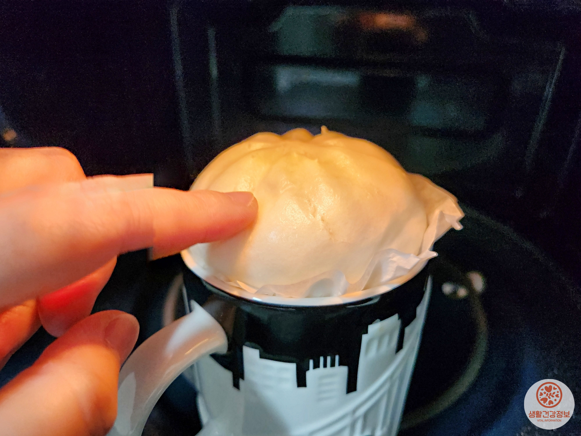 물을 채운 컵에 호빵을 올려서 데우면