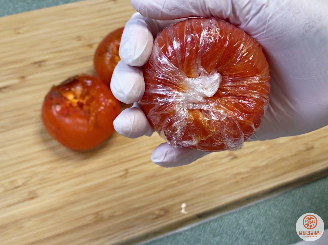 꼭지를 제거한 상태에서 랩으로 감싸주세요.