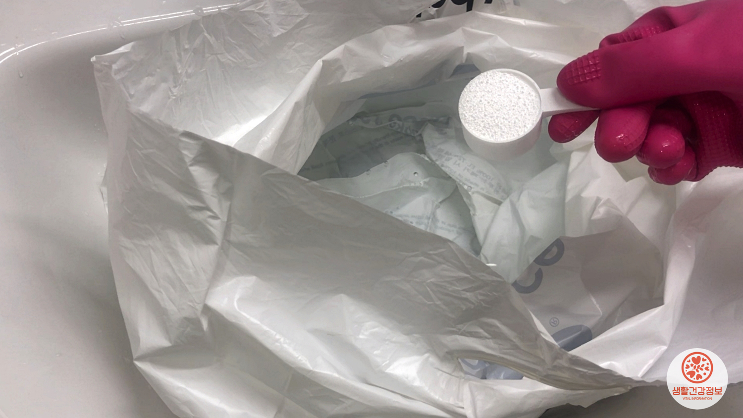 비닐봉지에 과탄산소다 풀어서 담가놓으니까