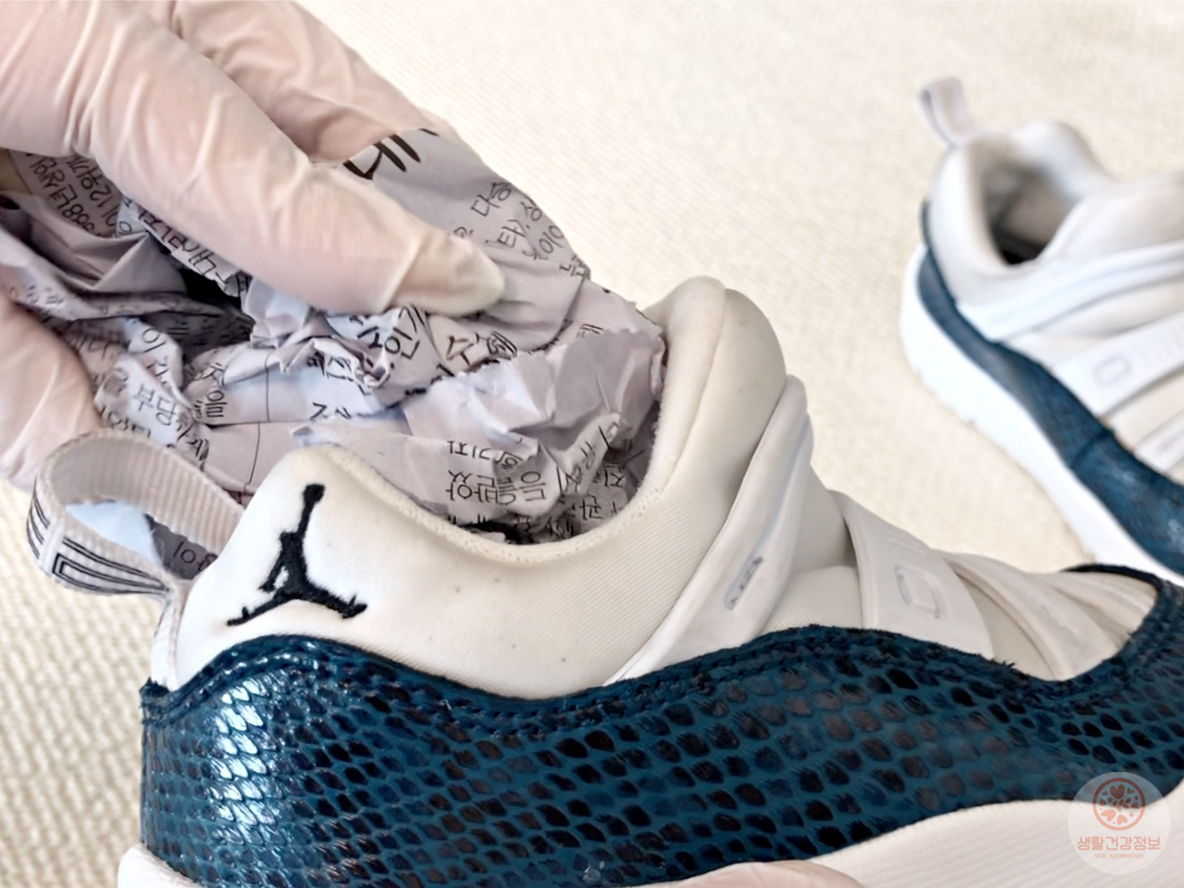 신발 속에 마른 수건이나 깨끗한 신문지를 채워서
