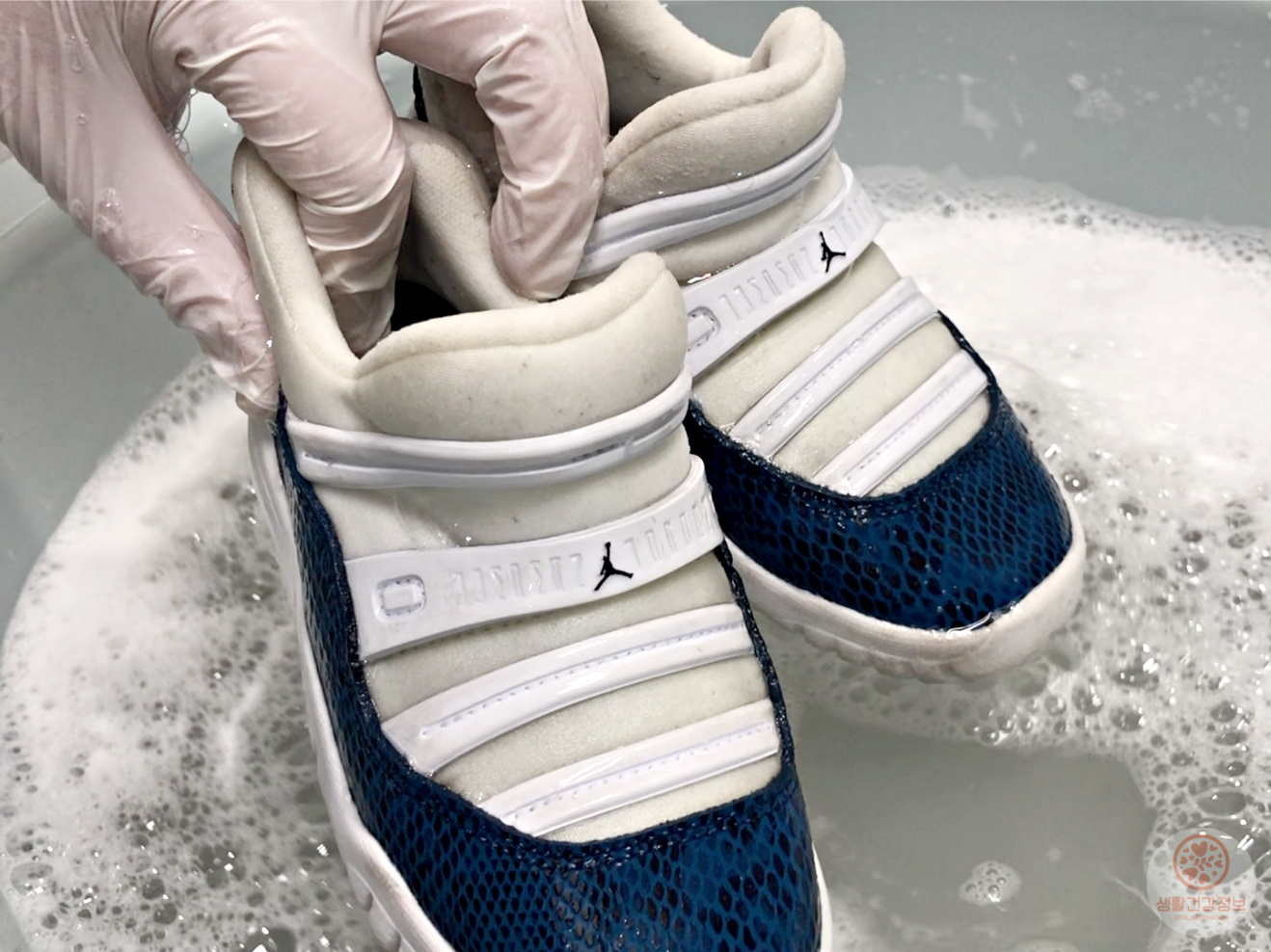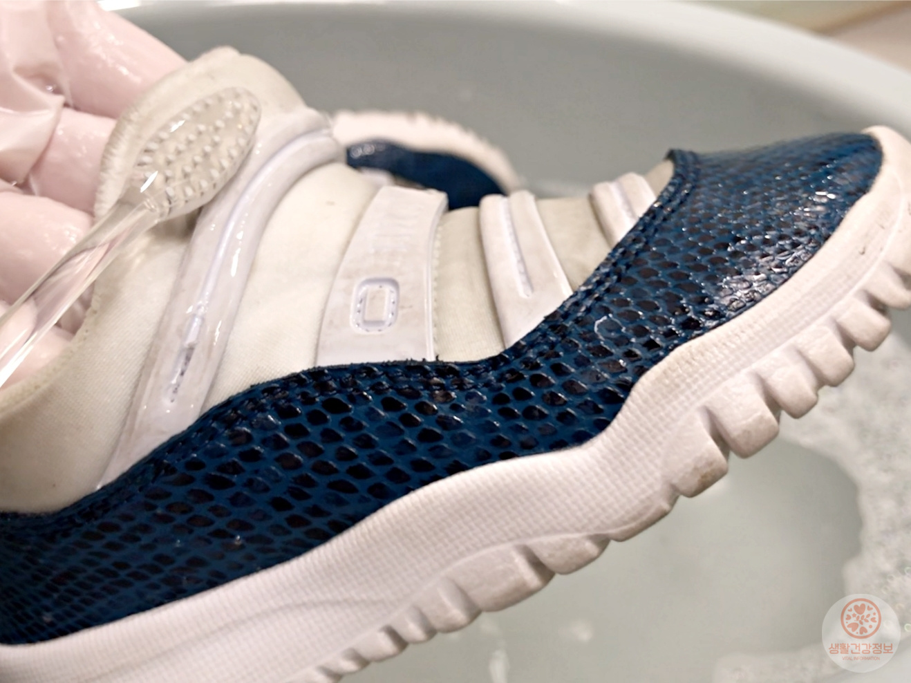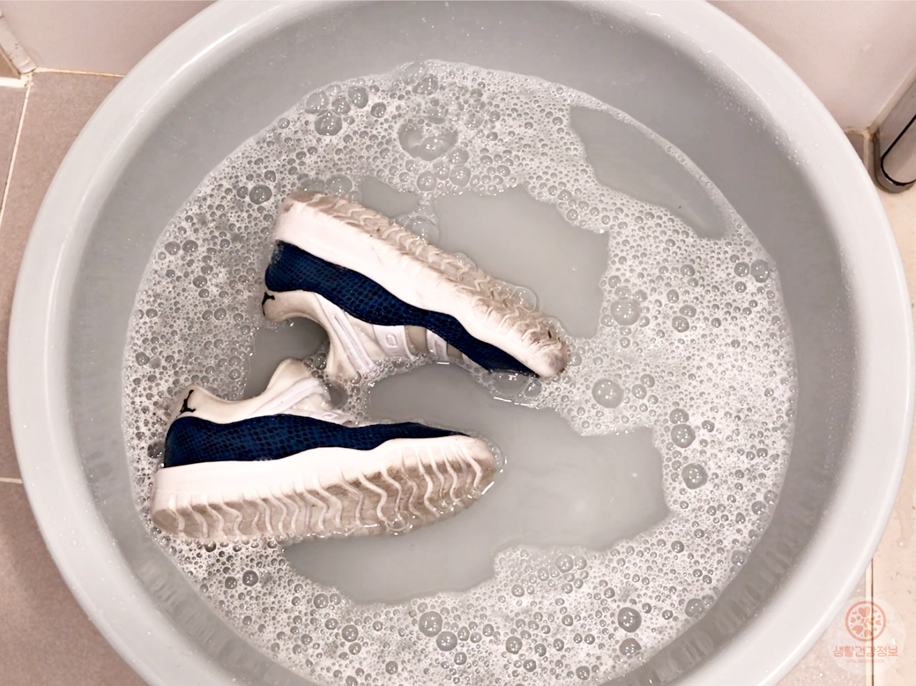 운동화를 세제물에 담갔다 뺐다 해주세요.