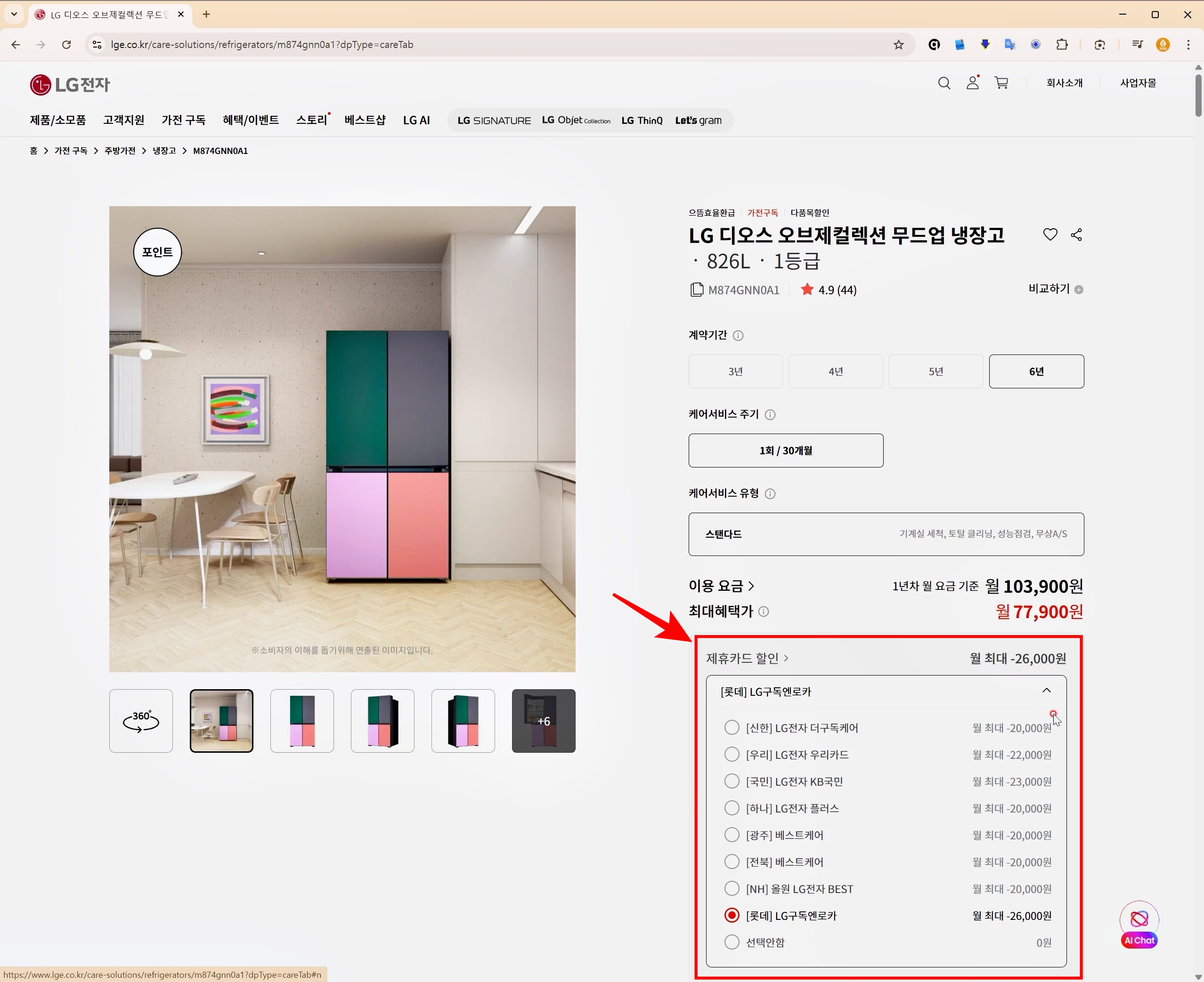 ▶︎ 가전 구독 제휴카드 안내: https://www.lge.co.kr/benefits/card-discount